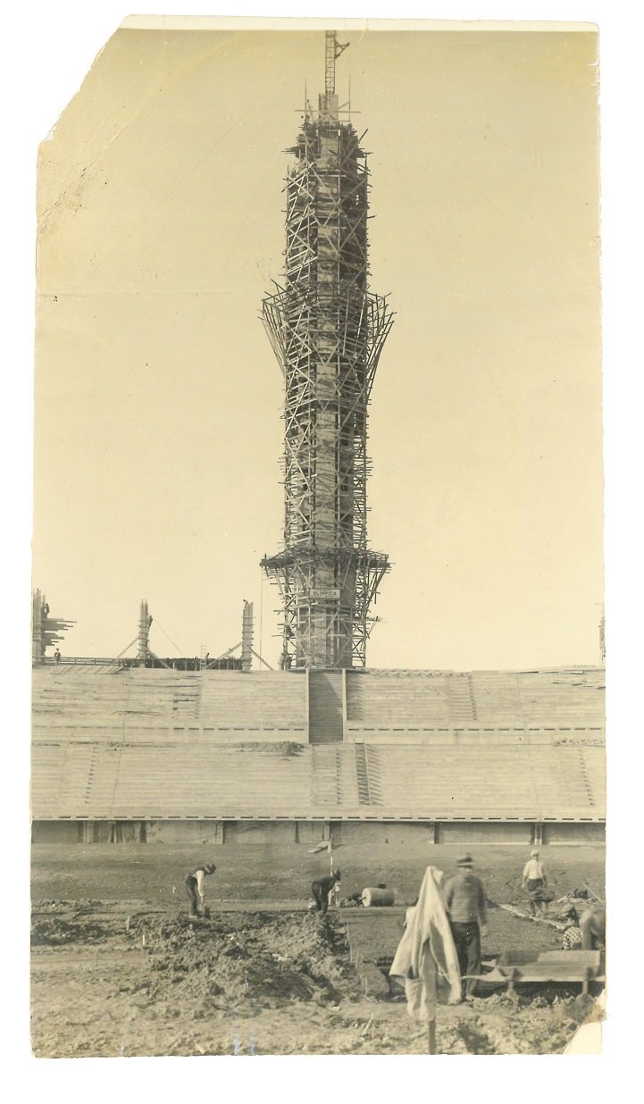La Torre de los Homenajes, con la que el Ar. Scasso coronó la Tribuna Olímpica para que luciera en su cúspide la bandera del vencedor —en primer término el pabellón uruguayo, por coherencia del destino— todavía se eleva en su sitio, ascendente y aerodinámica, como un símbolo perdurable de las ansias de triunfo de la nación creadora que lo hiciera realidad.