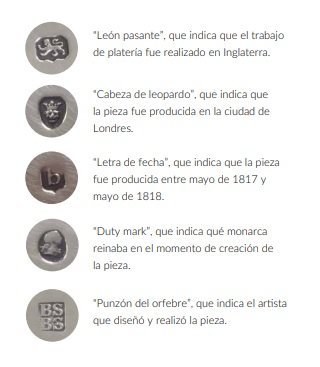 La platería inglesa, una de las más cotizadas, además de sus diseños posee también una característica especial: sus punzones, o marcajes, como también se los denomina. Llamados “hallmarks” en inglés, se trata de sellos estampados en objetos realizados en metales, principalmente para certificar el contenido y calidad de los metales preciosos. Su uso es de larga data, y existen objetos de plata con evidencia de haber sido sellados ya en el siglo IV A.C. Pero fueron los ingleses, sin embargo, quienes en tiempos de la Baja Edad Media comenzaron a implementar un sistema más detallista y riguroso.