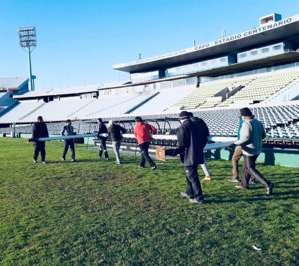 Desde el origen los arcos han sido el centro de gravedad de todo encuentro futbolístico, y hacia ellos se dirigen los jugadores, el balón y las miradas. Cada cancha tiene los suyos, y algunos, además de testigos privilegiados, se convierten en protagonistas. Así sucedió con el par de arcos de uno de los más legendarios templos del fútbol mundial, los del Centenario de Montevideo, que tras cuarenta y cuatro años al pie de las Tribunas Ámsterdam y Colombes, y cargados de historia futbolística, se despidieron del Field el pasado miércoles 18 de septiembre. Allí se erigieron, firmes en su tarea, desde 1974 hasta el año pasado, fecha en que fueron sustituidos por nuevas porterías de acuerdo a las últimas indicaciones de la FIFA.  En su origen ellos mismos también habían cumplido la función de estar al día con los reglamentos del fútbol internacional, pues fueron los primeros arcos del Centenario realizados en caño galvanizado, en sustitución de los tradicionales postes cuadrados construidos en madera.