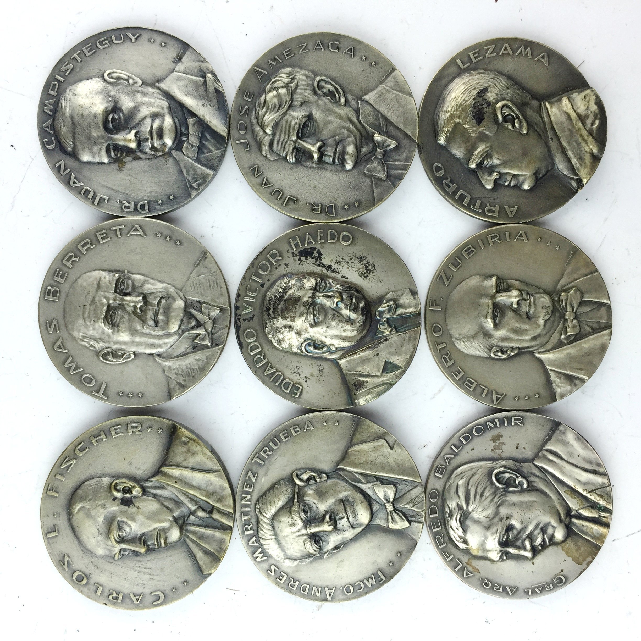 Colección de 11 medallas uruguayas en bronce plateado. «Presidentes de la República.» Realizadas por Tammaro.