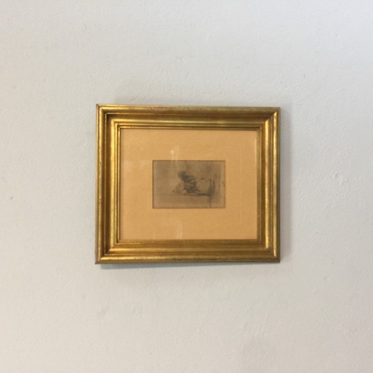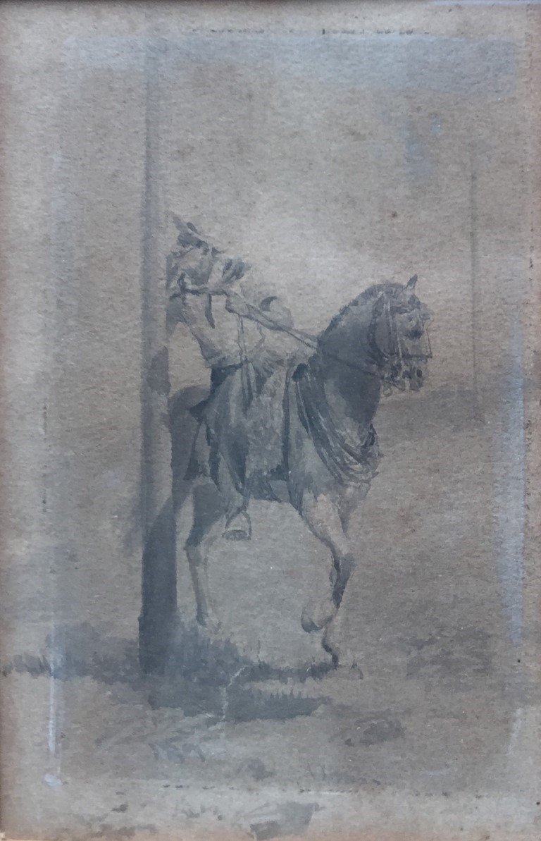 Anónimo siglo XIX. Acuarela sobre papel. «Gaucho a caballo.» 14 x 9 cm.