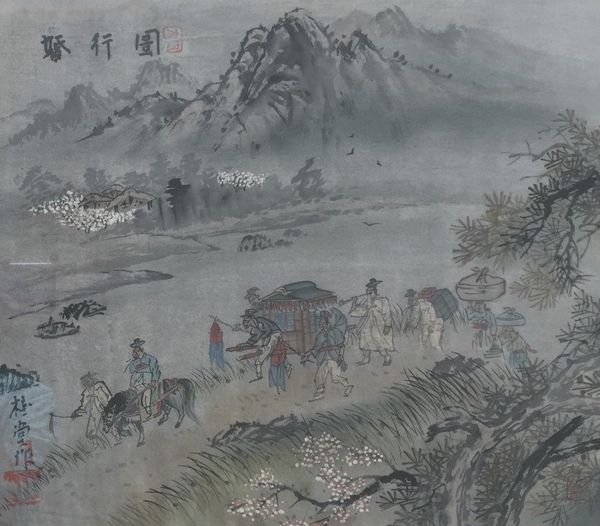 Firma ilegible (escuela china). Acuarela sobre papel. «Paisaje con escena típica.» Firmado y sellado. 41 x 47 cm.
