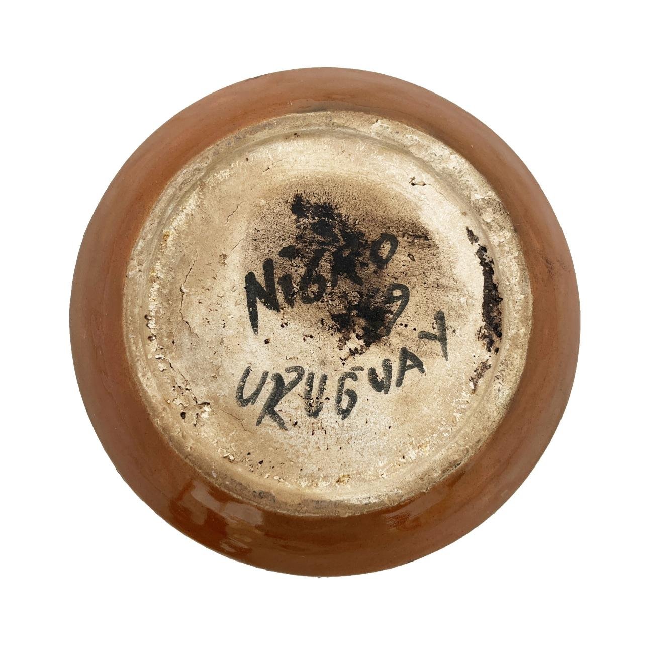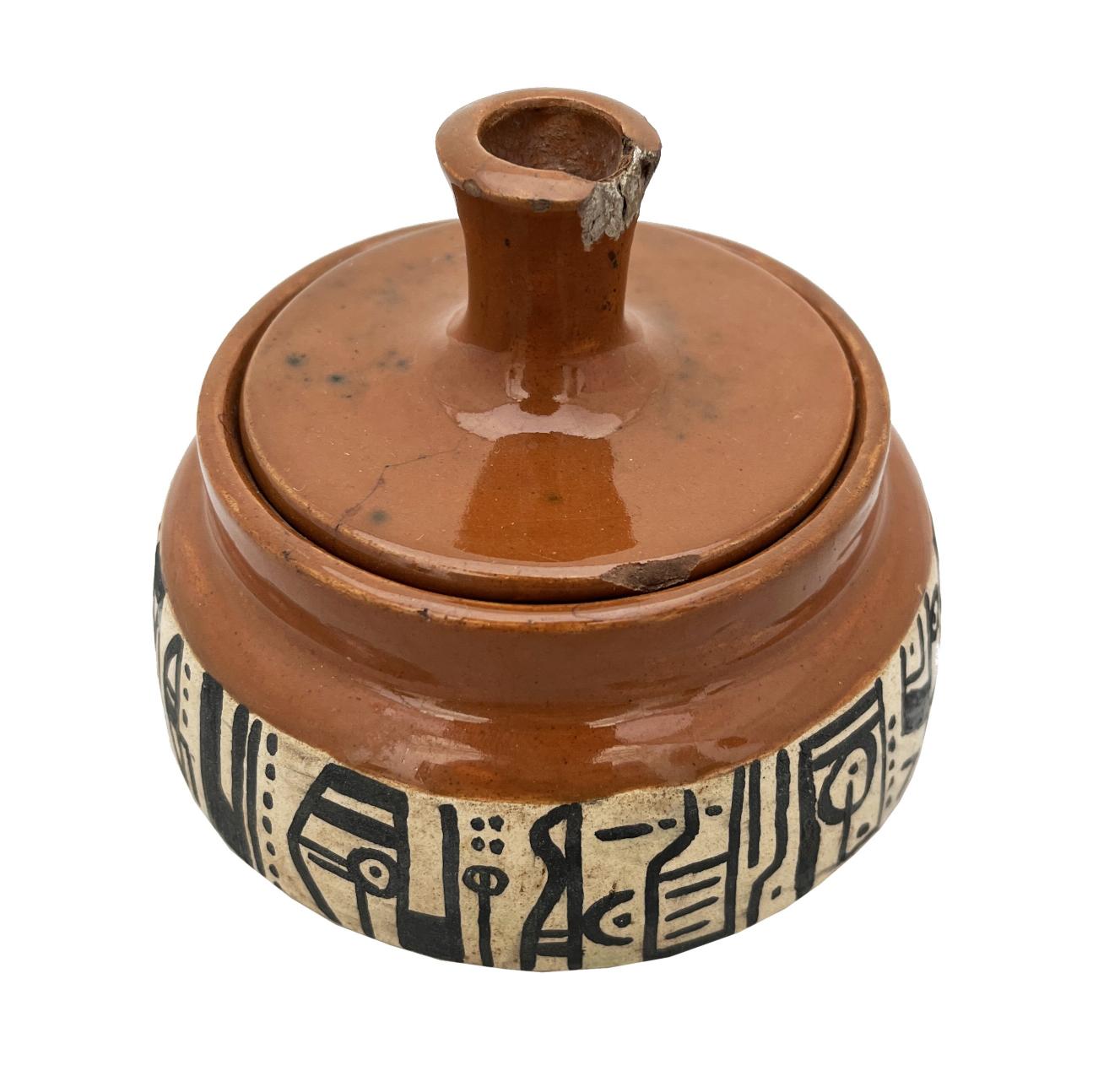 ADOLFO NIGRO (Escuela uruguaya, 1942-2018) Jarrón en cerámica «Friso constructivo» Firmado, fechado «59» y situado «Uruguay» en la base 9 x 11 cm Presenta cascadura en pomo de tapa