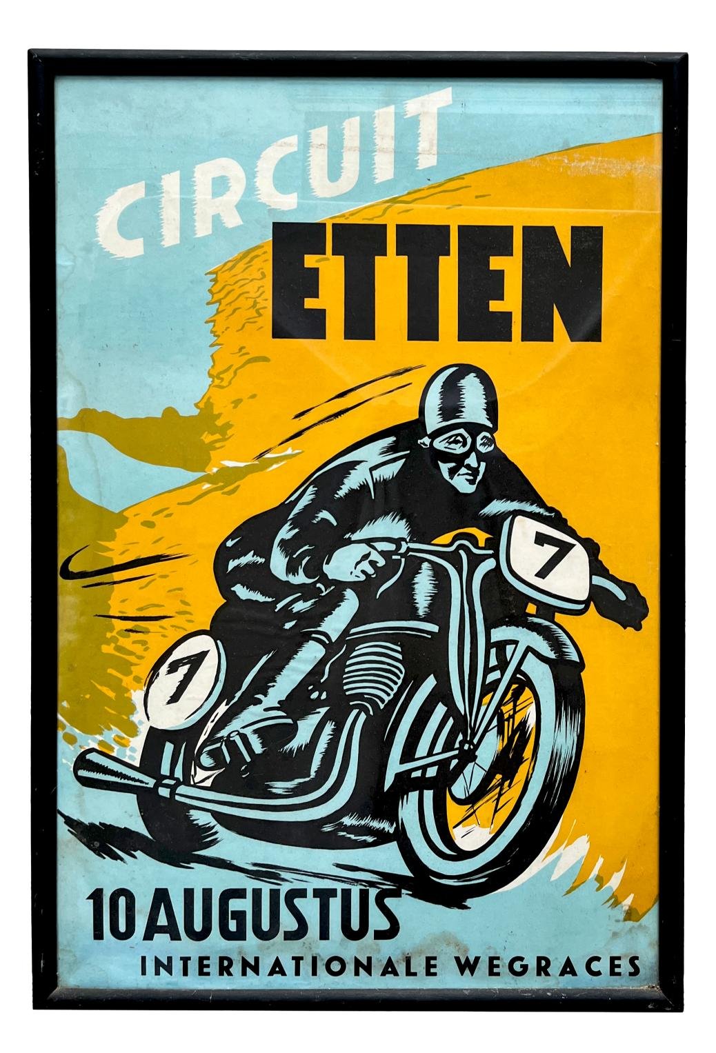 Afiche. «Circuit Etten. 10 augustus. Internationale wegraces.» Enmarcado. 76 x 50 cm.