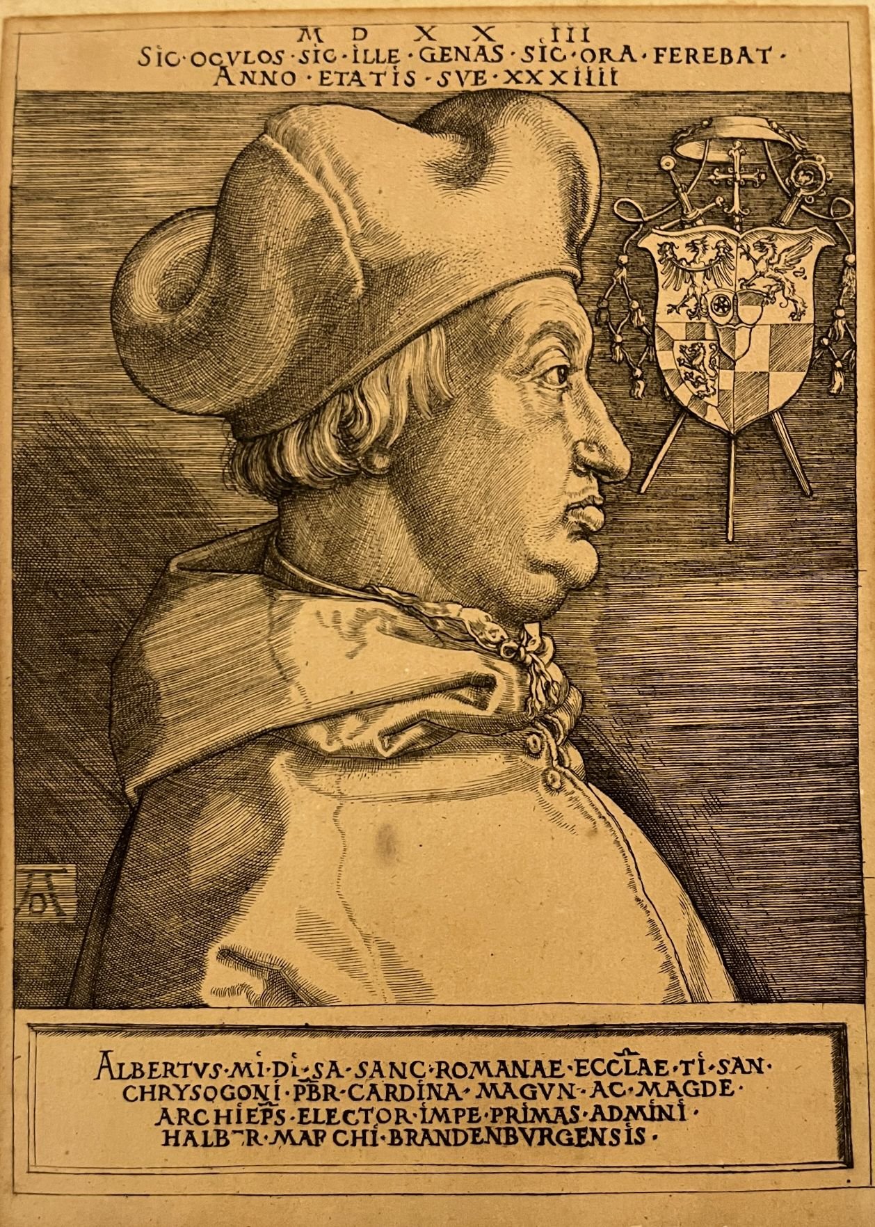 ALBERTO DURERO (Escuela alemana, 1471-1528) Grabado «Cardenal Alberto de Brandeburgo» 17 x 12.5 cm