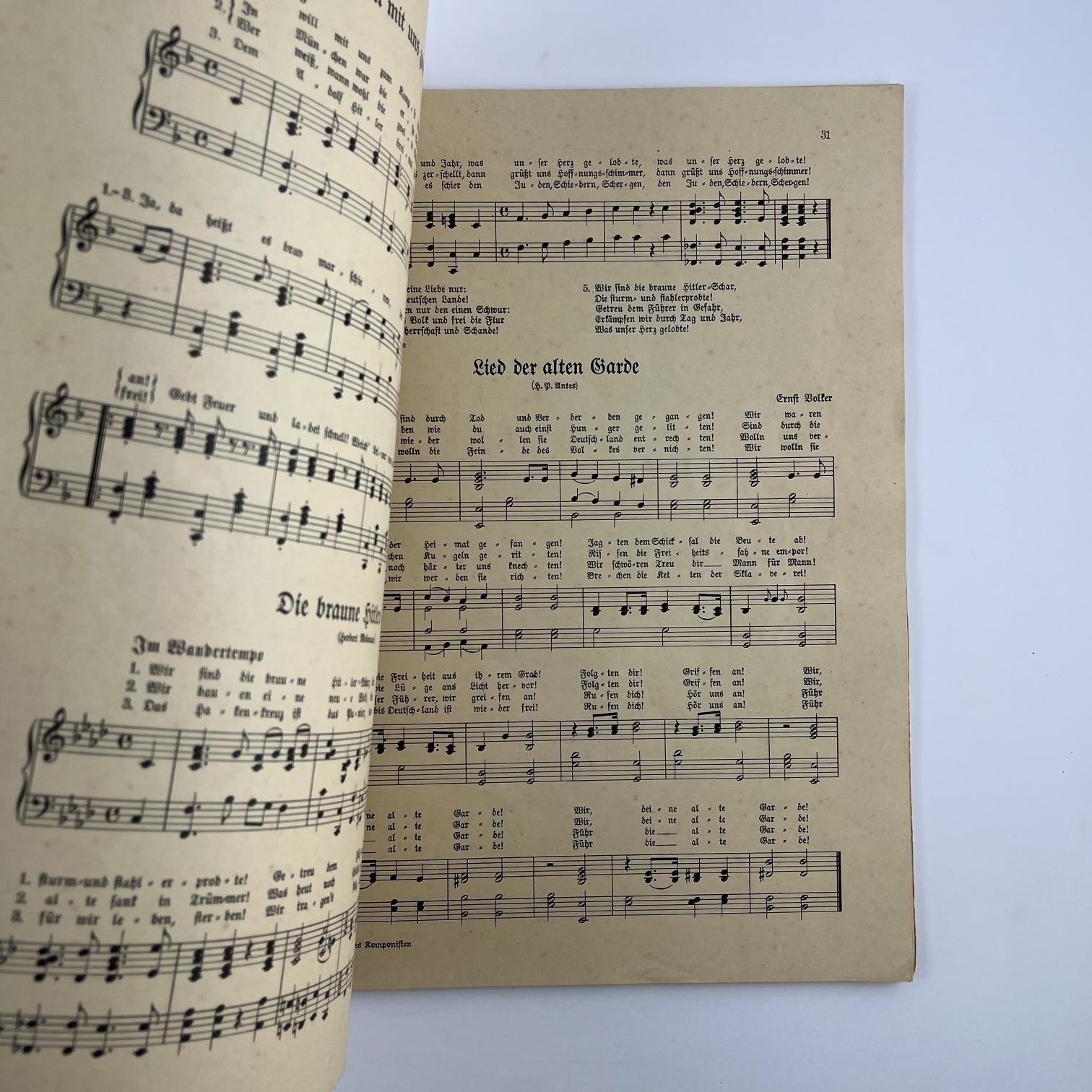 “Horst Wessel March”. Álbum alemán de partituras militares. Época nacionalsocialista. Múnich, 1934. 86 p.