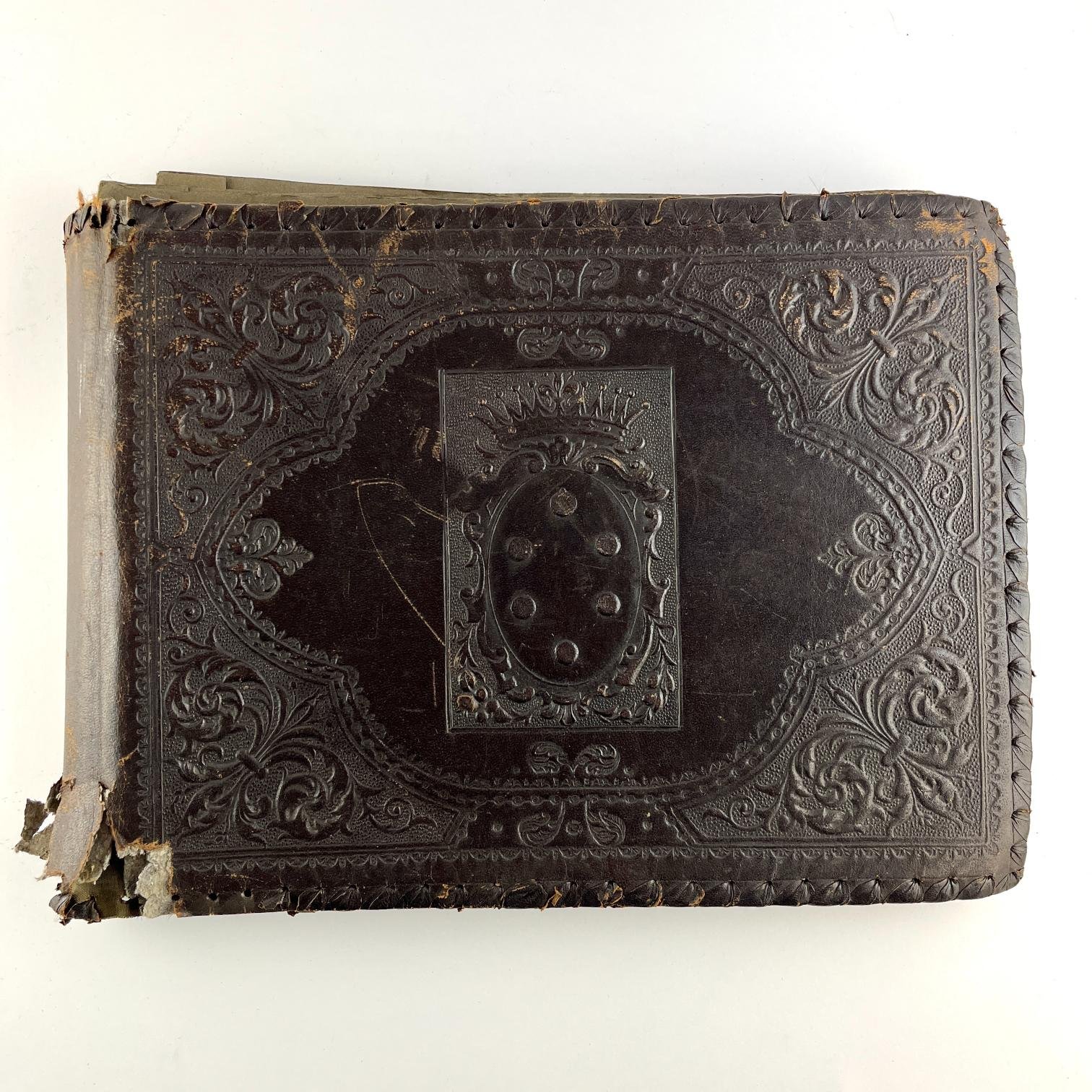 Álbum de fotos que perteneció al Capitán de Navío Eduardo Nosei de la Armada Nacional de Uruguay. Encuadernado en cuero.