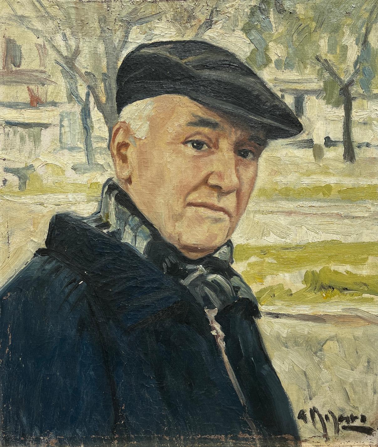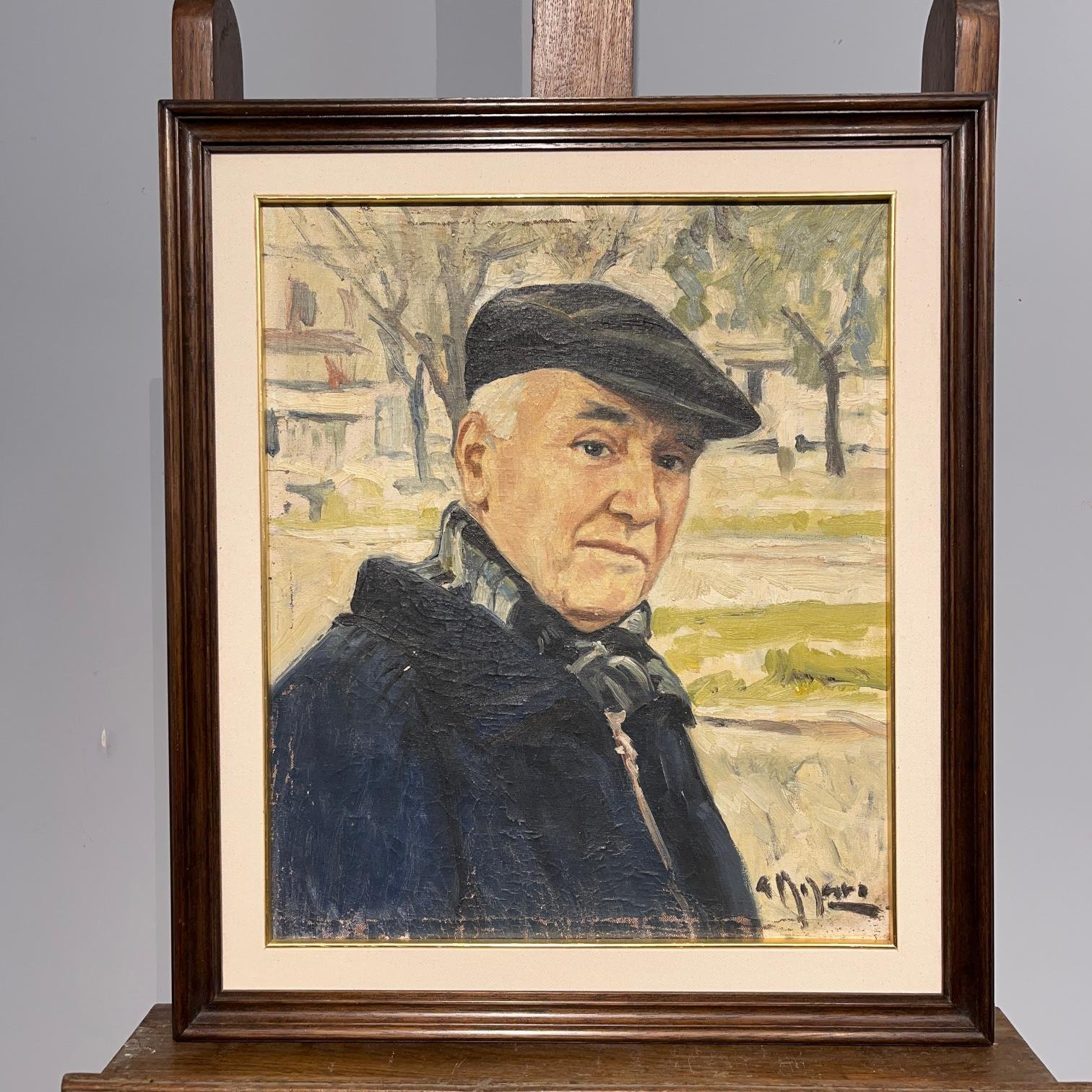 ALCEU RIBEIRO (Escuela uruguaya, 1919-2013) Óleo sobre tela «Autorretrato» Firmado abajo a la derecha 54 x 46 cm Presenta pequeños desprendimientos en óleo
