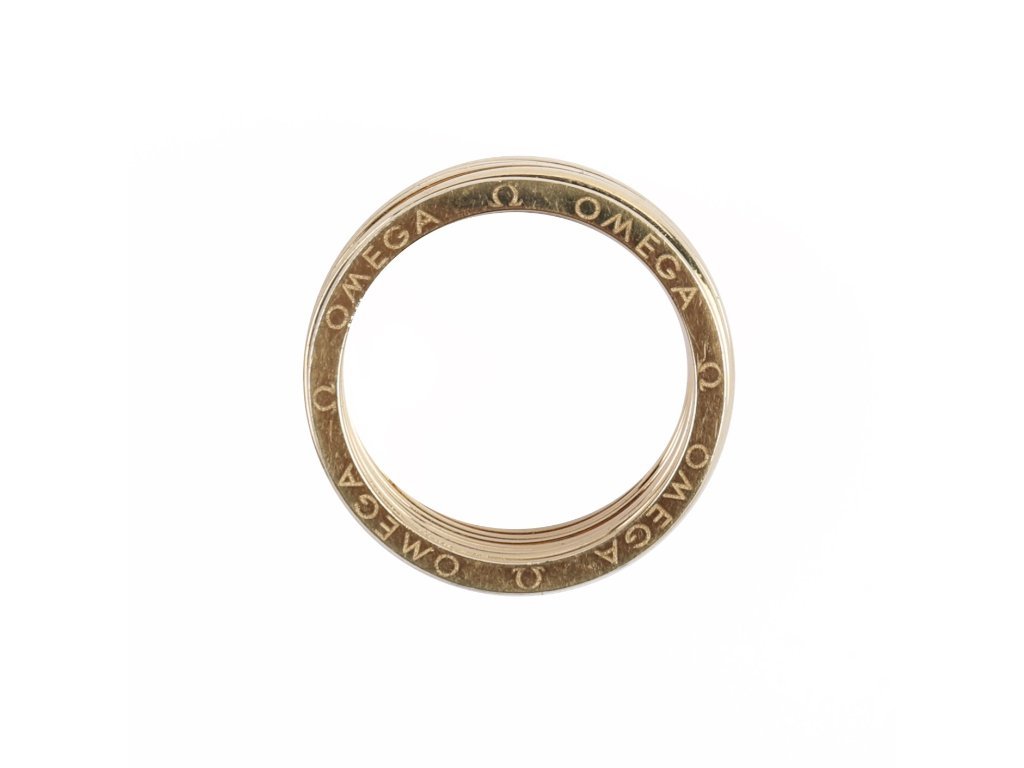 Anillo suizo Omega en oro 18 K amarillo con seis pequeños brillantes. Numerado 55136 60. Peso bruto 14 gr. Diámetro interno 19 mm.