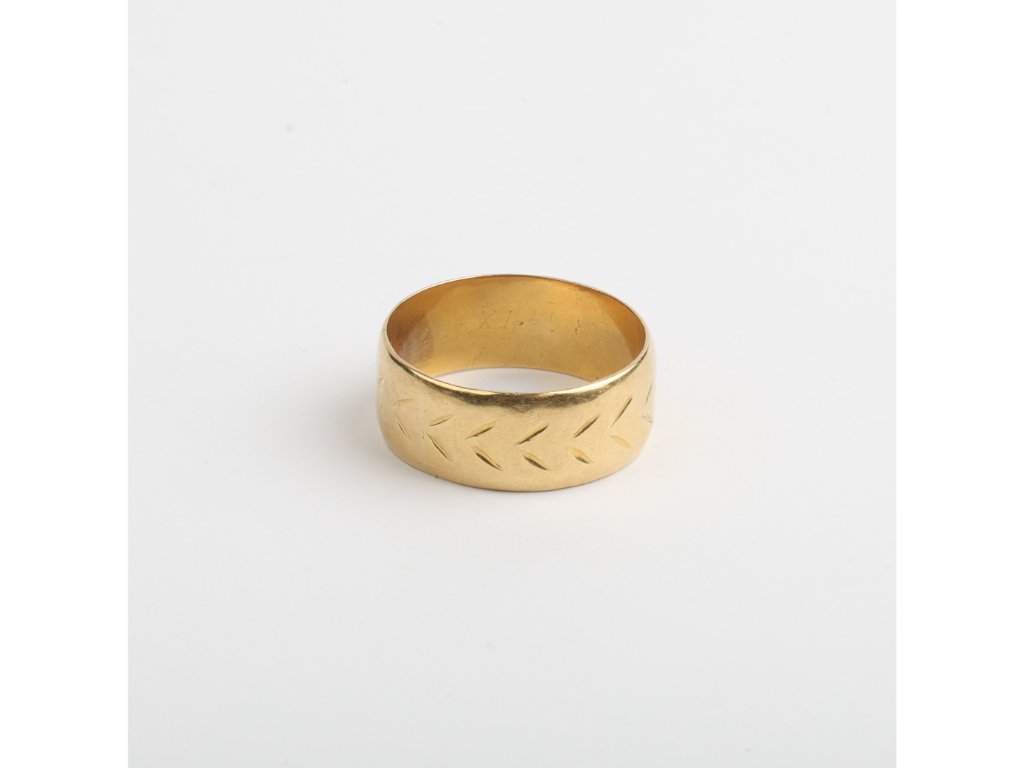 Anillo en oro 18 K amarillo. Peso 9.7 gr. Diámetro interno 22 mm.