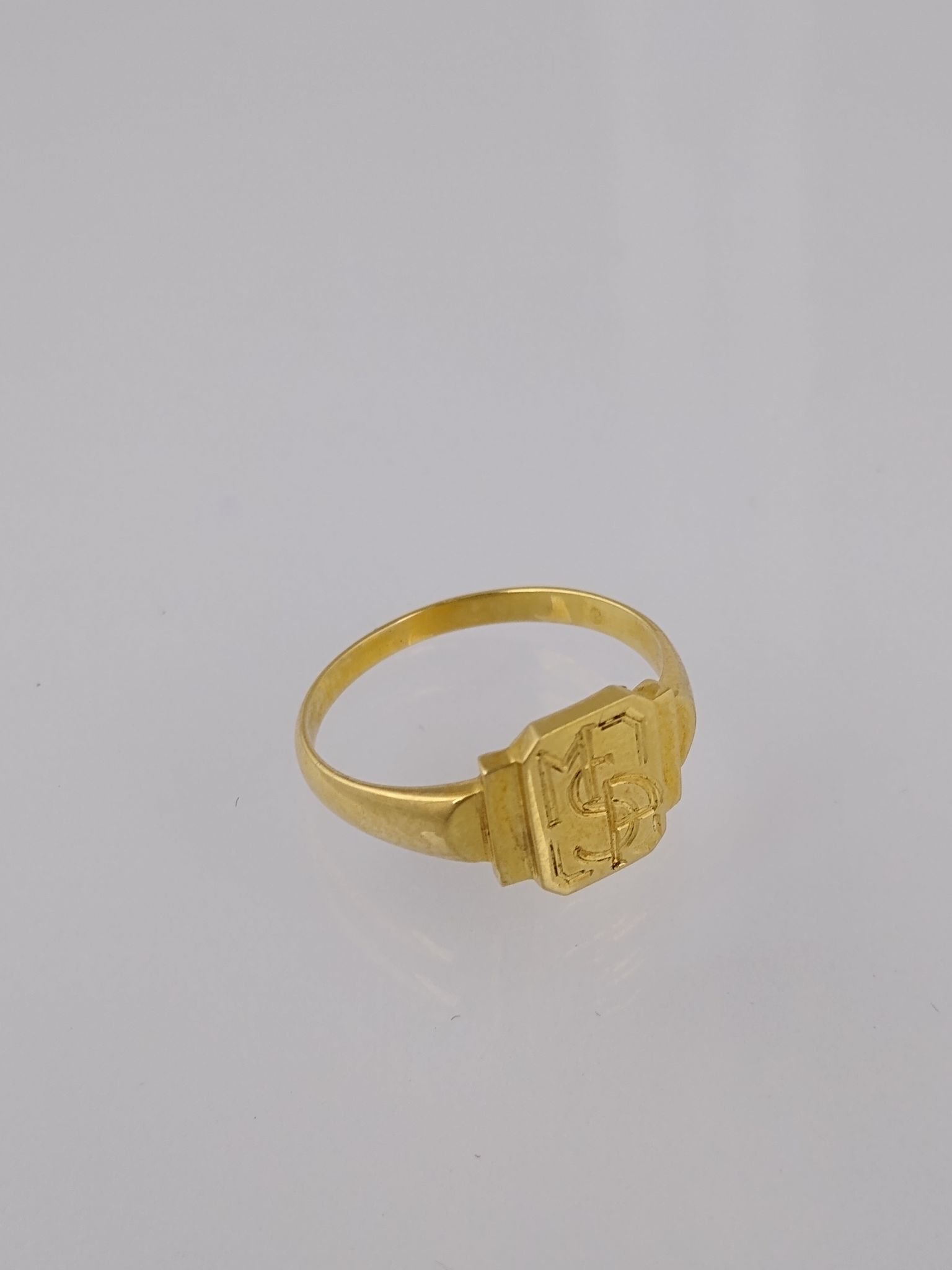 Anillo para niña en oro 18 K amarillo con iniciales «M.S.» grabadas. Peso 1.4 gr.