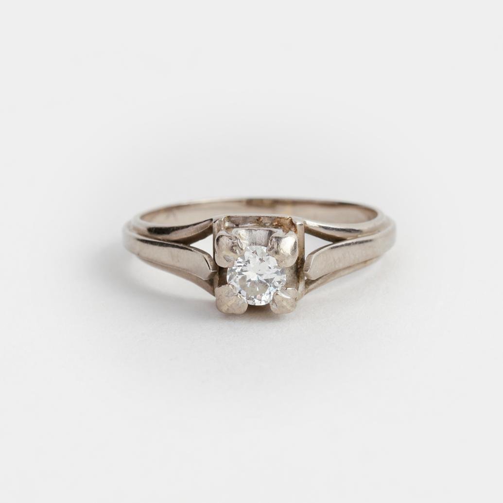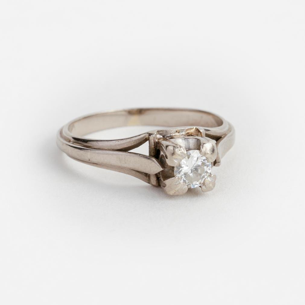 Anillo solitario en oro 18 K blanco con brillante central de 0.40 ct aprox. Diámetro interno 19.5 mm. Peso bruto 5 gr.