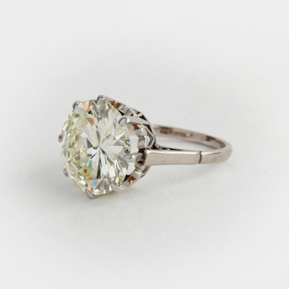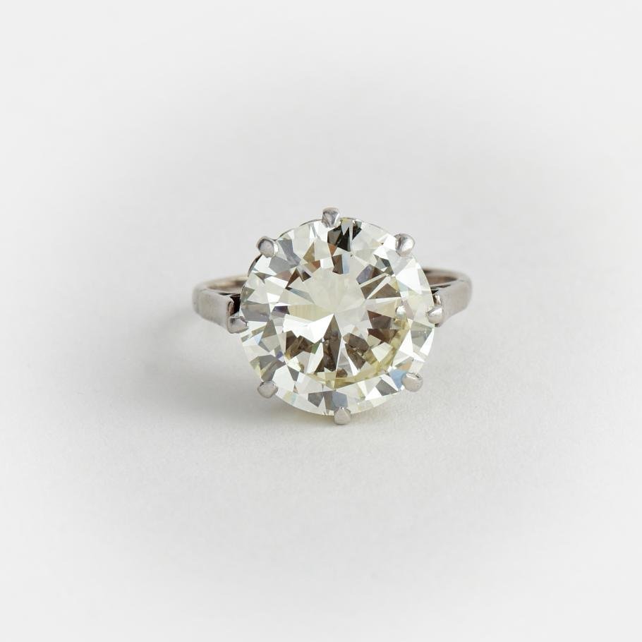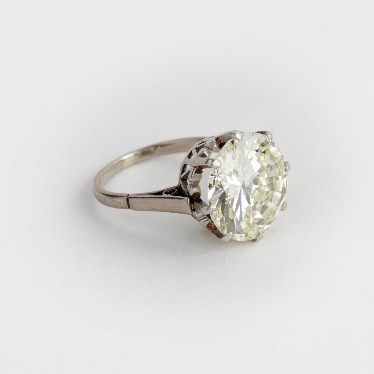 Anillo solitario en oro 18 K blanco con brillante de 8.50 ct. aprox. Pureza estimada FL. Color estimado M. Diámetro interno 16.5 mm. Peso bruto 5.6 gr.