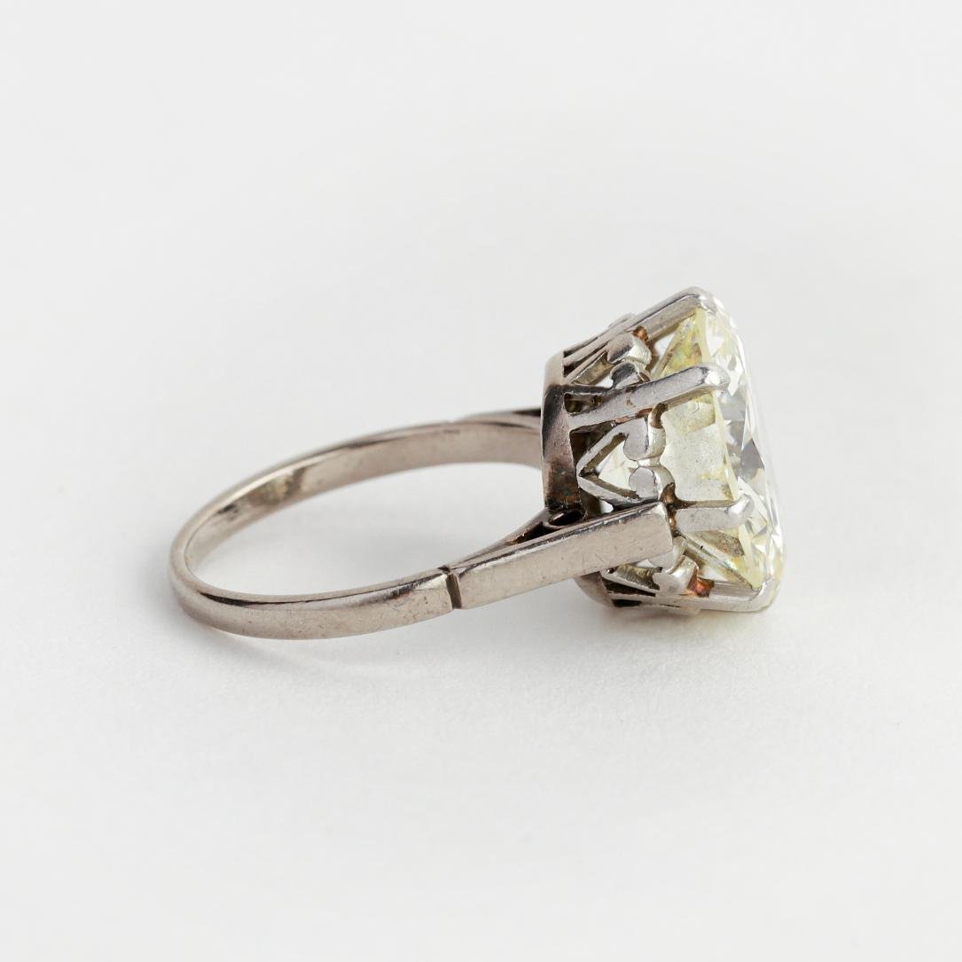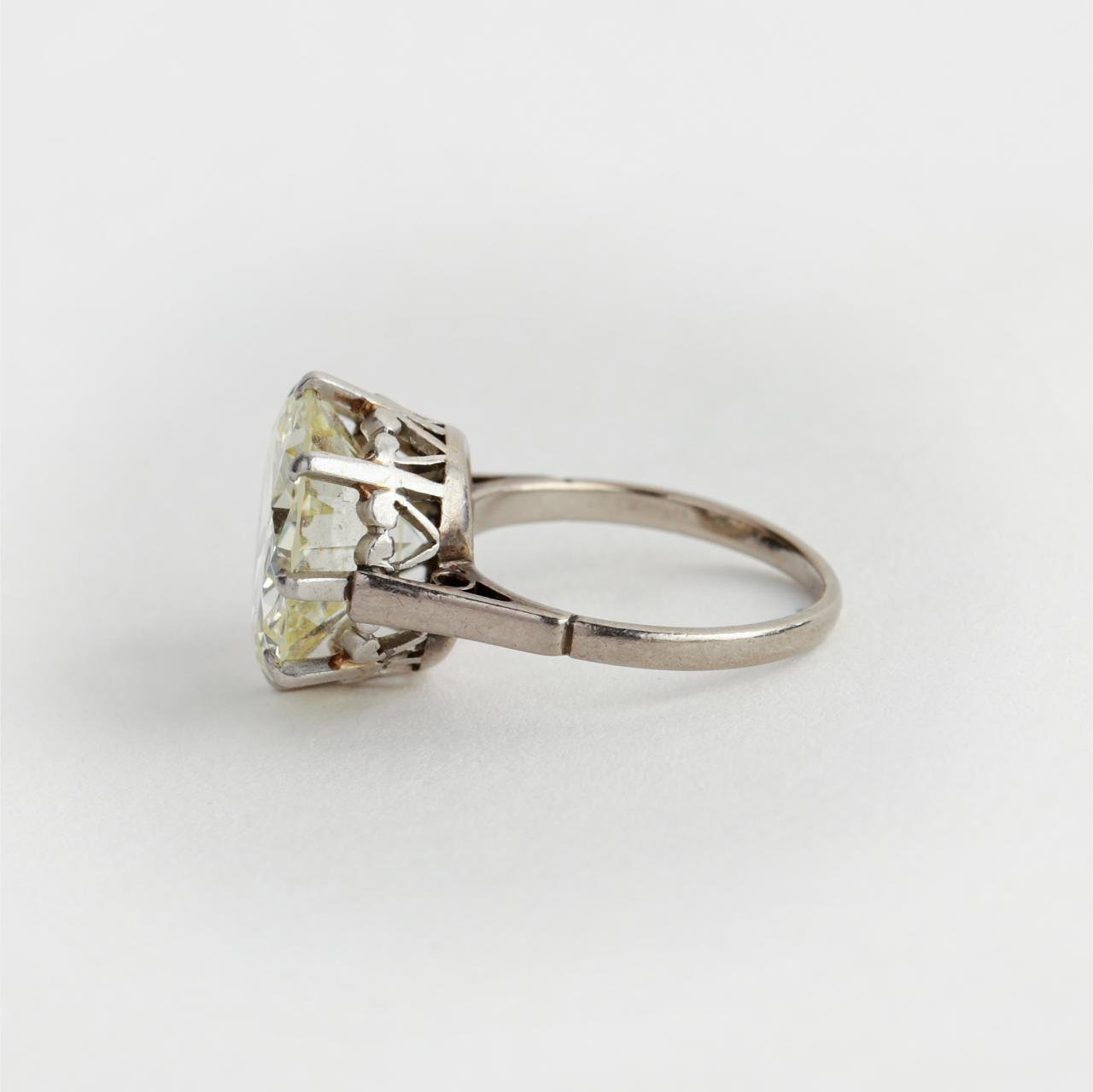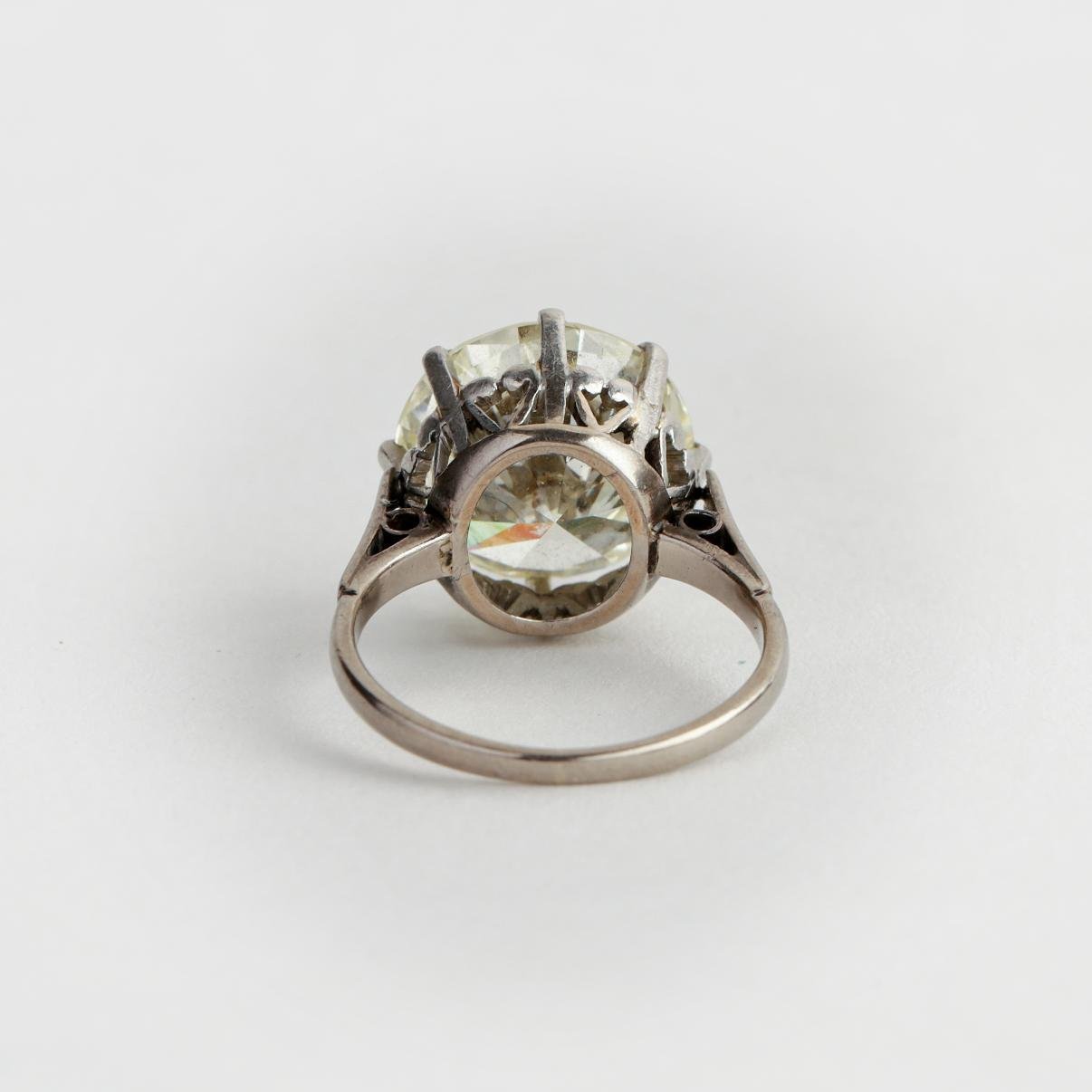 Anillo solitario en oro 18 K blanco con brillante de 8.50 ct. aprox. Pureza estimada FL. Color estimado M. Diámetro interno 16.5 mm. Peso bruto 5.6 gr.