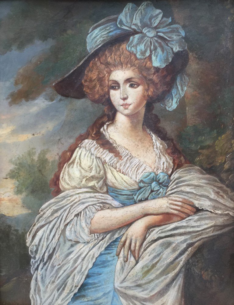 Anónimo europeo (siglo XVIII). Óleo sobre chapa de cobre. «Retrato de dama.» 21.5 x 16.5 cm.