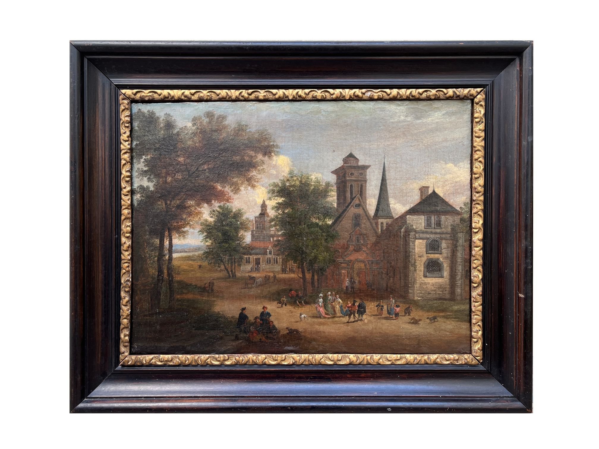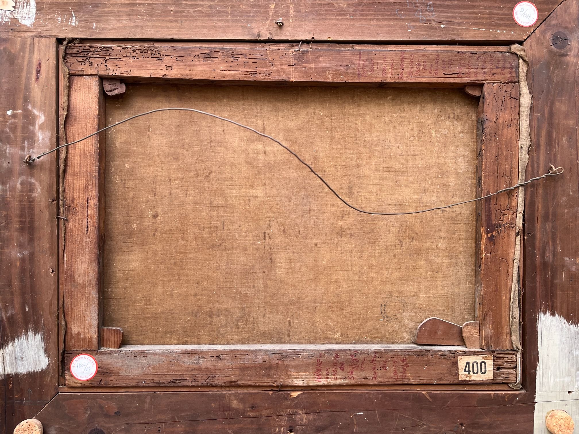 Anónimo europeo s. XIX Escena de pueblo con turcos Óleo sobre tela. Medidas 55 x 42 cm
