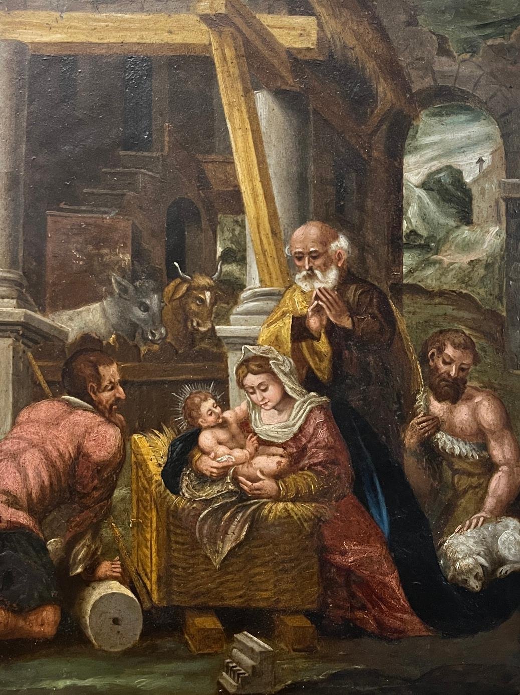 Anónimo europeo s. XVIII Óleo sobre chapa «Adoración de los pastores» 31 x 23,5 cm
