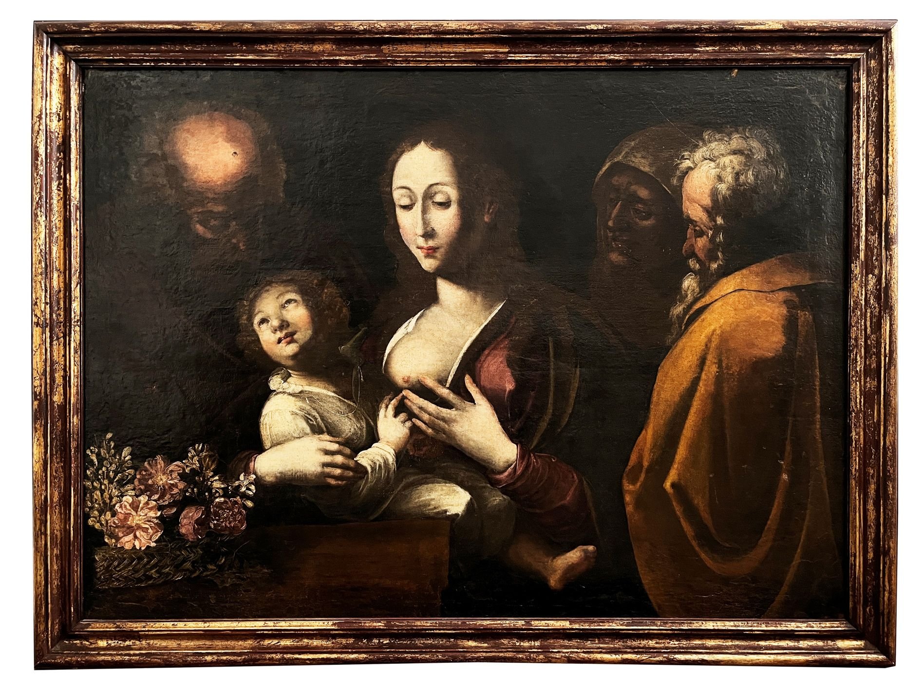 Anónimo europeo s. XVIII Óleo sobre tela «Virgen con Niño Jesús, San José, Santa Ana y San Joaquín» 75 x 102 Reentelado