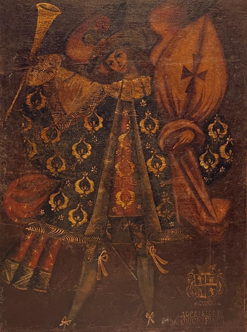 Anónimo hispanoamericano s. XVIII Óleo sobre tela «Arcángel del juicio final» 78 x 56 cm