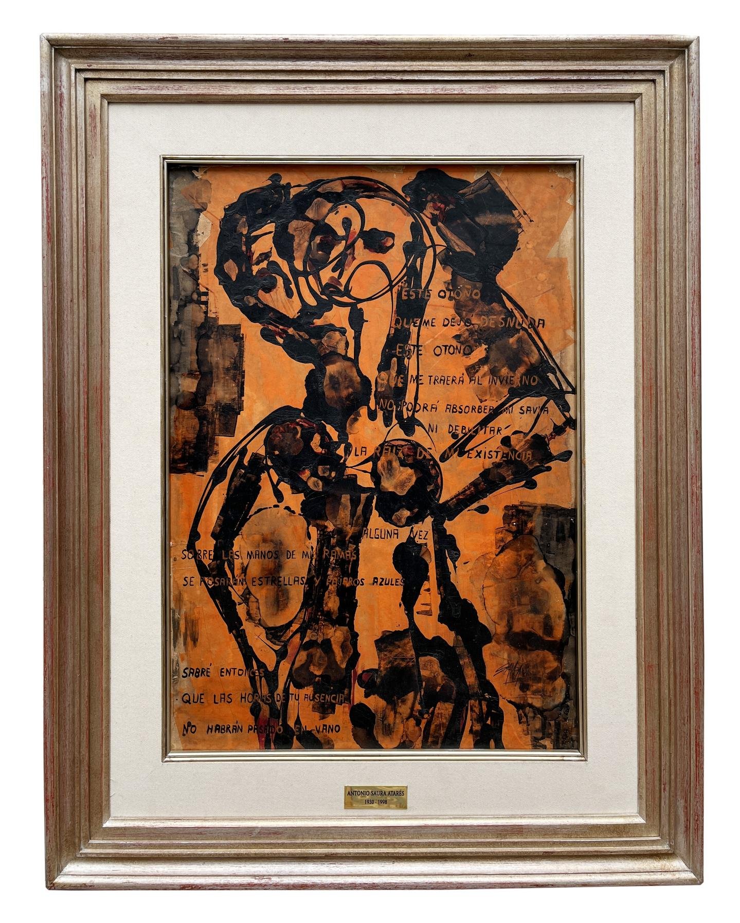 ANTONIO SAURA (escuela española, 1930-1998) Acrílico sobre cartón «Este otoño que me dejó desnuda» Firmado abajo a la derecha 63 x 45 cm