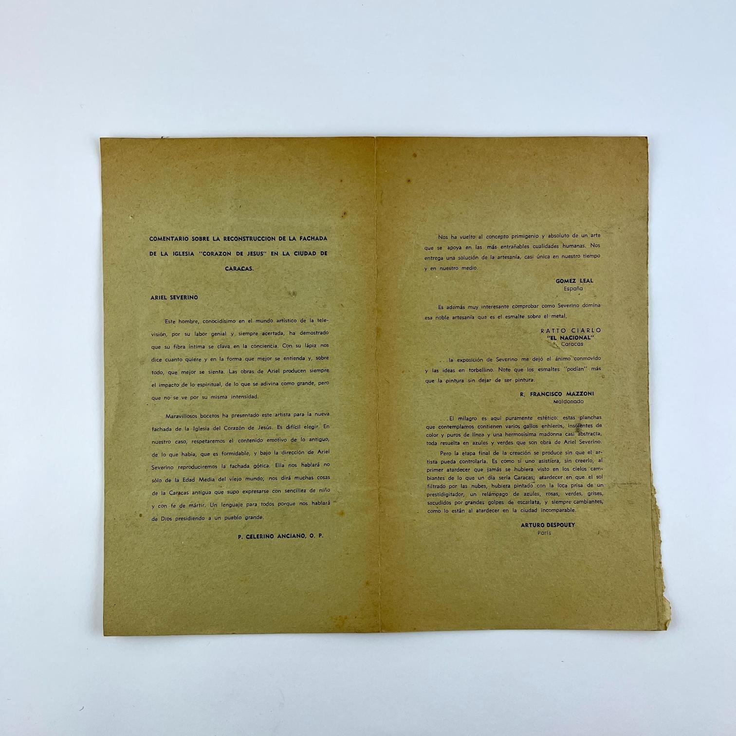 ARIEL SEVERINO (Escuela uruguaya, 1920-1967) Esmalte sobre chapa de hierro «Abstracto» Sin firmar 13 x 10 cm Presentado en interior de díptico de papel, original