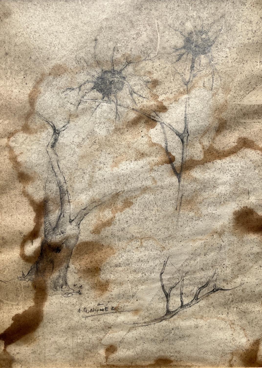 ARMANDO GARCÍA NÚÑEZ (Escuela mexicana, 1883-1965) Lápiz sobre papel «Estudio para ramas y plantas» Firmado abajo a la izquierda 27 x 29 cm Presenta manchas de humedad