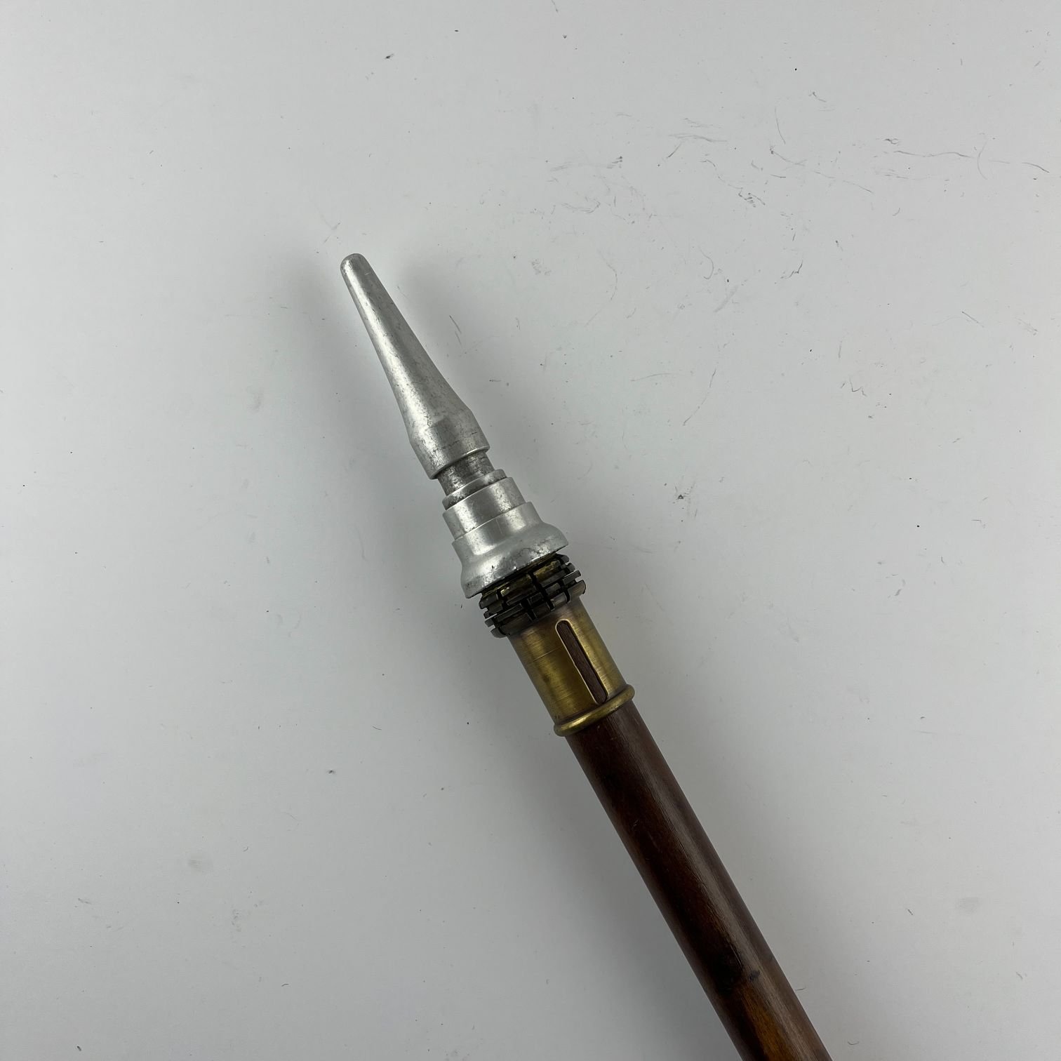 Bastón banqueta inglés fabricado por Regal en madera con asiento en aluminio y cuero color marrón. Alto bastón 95 cm.
