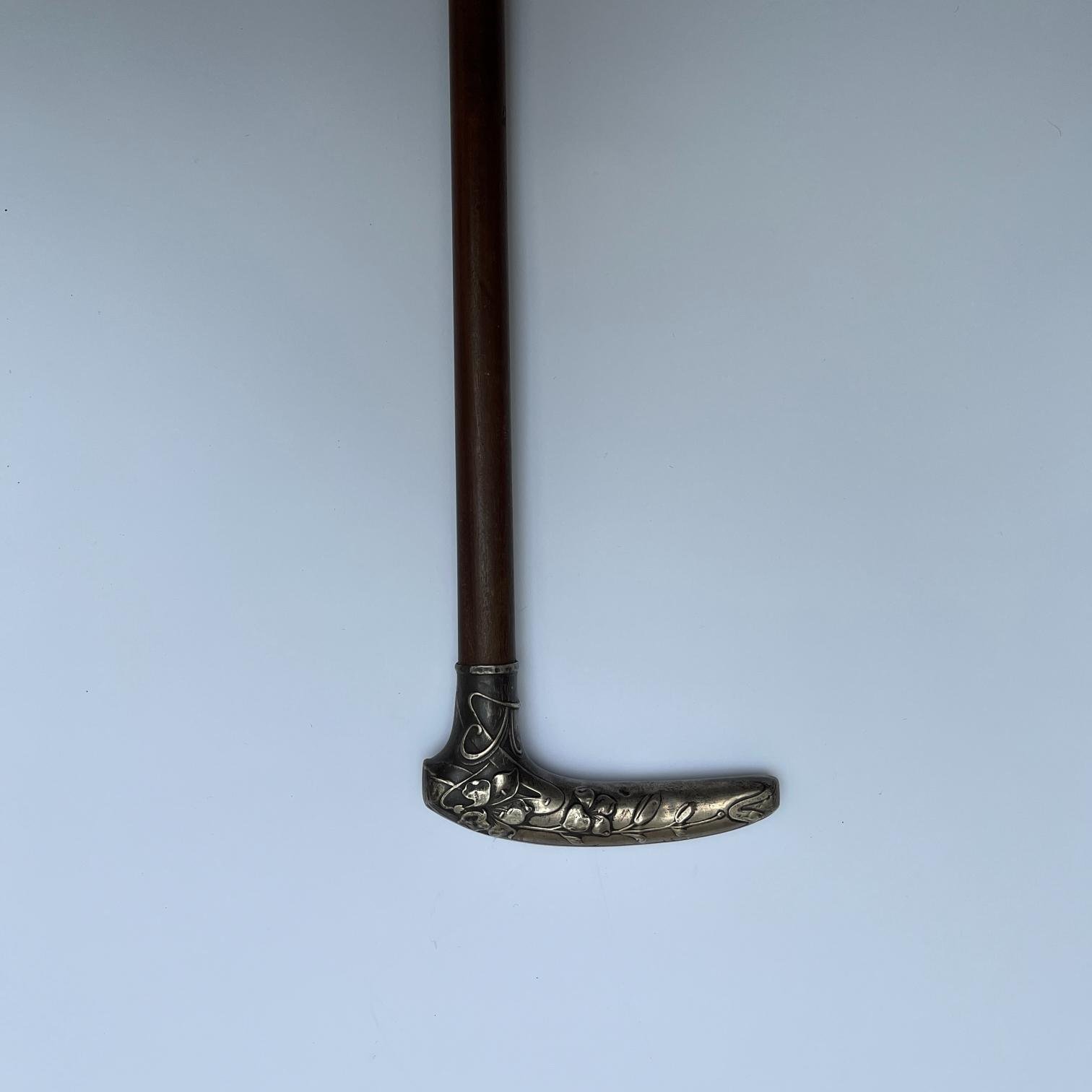 Bastón cabo art nouveau en plata alemana