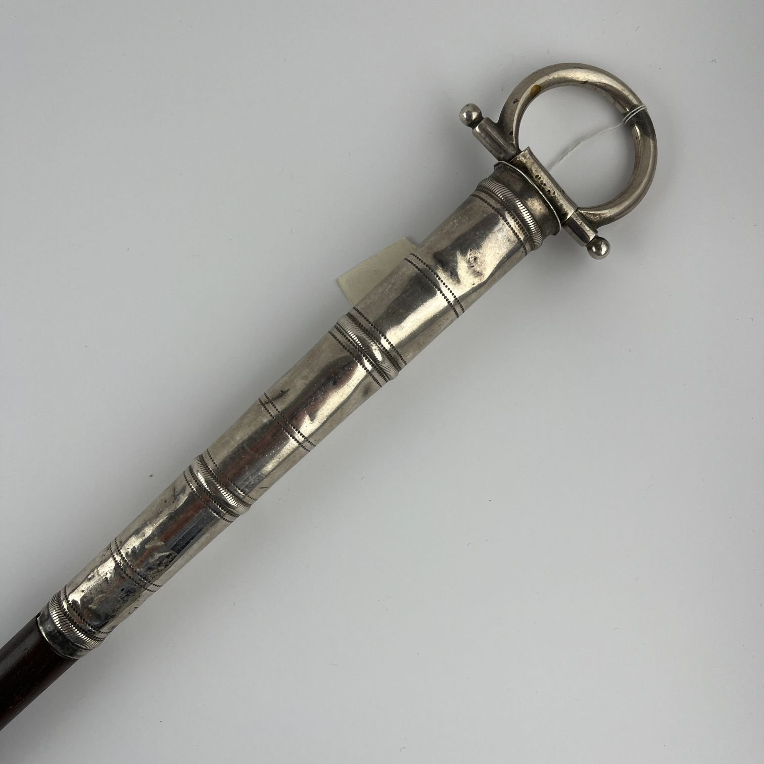 Bastón de mando en madera con cabo en metal plateado Eberle. Largo total 70 cm.