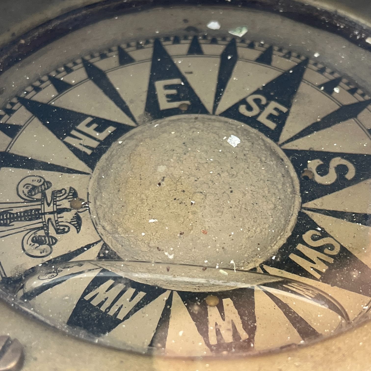 Bitácora náutica alemana en bronce, s. XIX. Fabricada por W. Ludolph. 38 x 37 x 25 cm. Presentada sobre peana en madera.