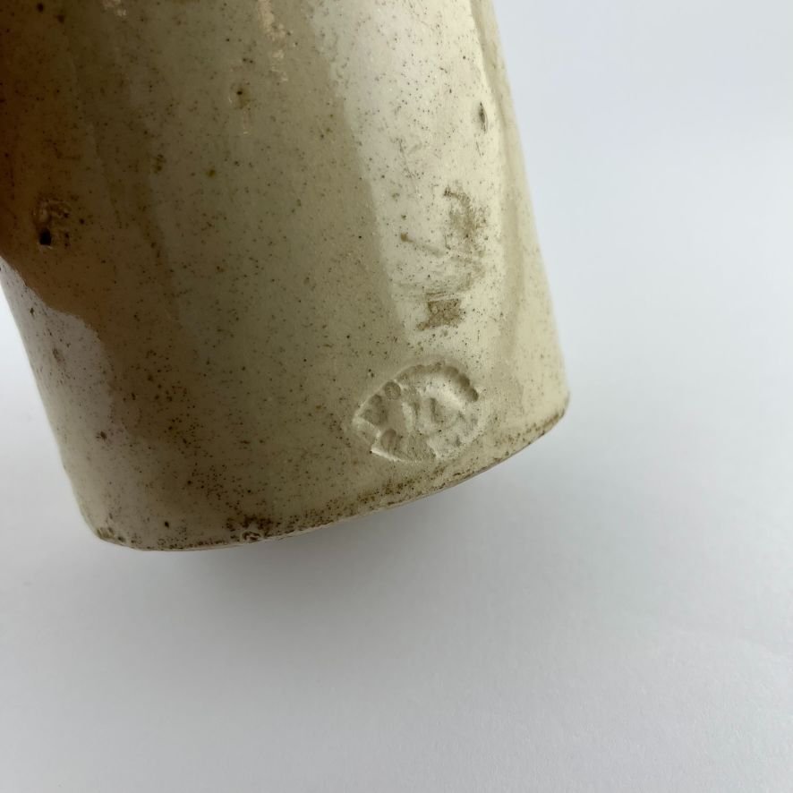 Botella de cerveza uruguaya en gres. «Luis Lang.» Soriano, Mercedes. Marca en letra incisa. Sello inciso del fabricante Grosvenor, Glasgow. Alto 23.5 cm.