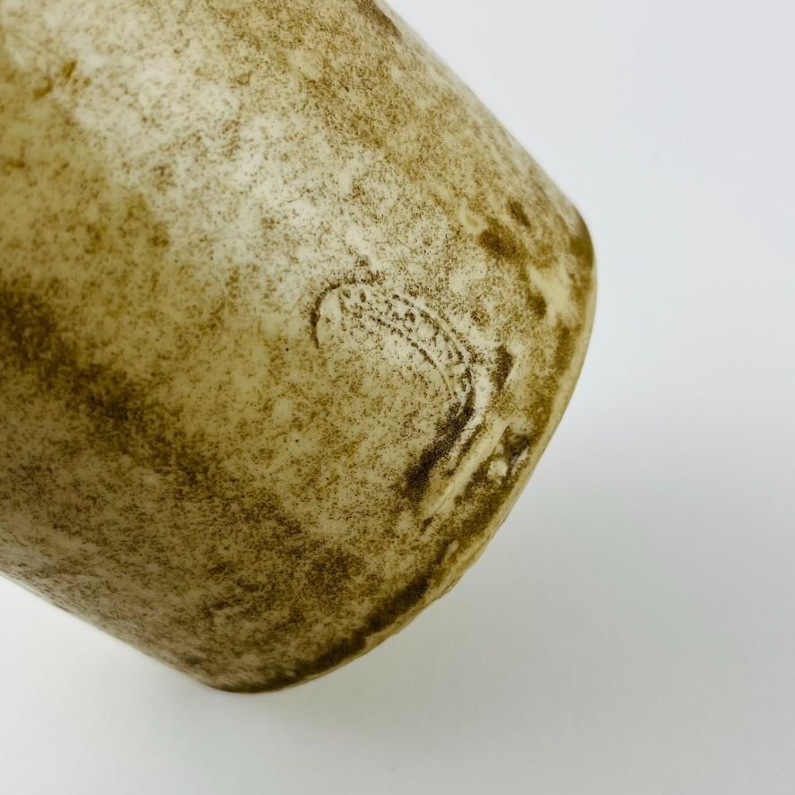 Botella de cerveza uruguaya en gres. «Cervecería Oriental Robillard.» Etiqueta oval en cerámica. Pequeña cascadura en boca. Alto 22 cm.