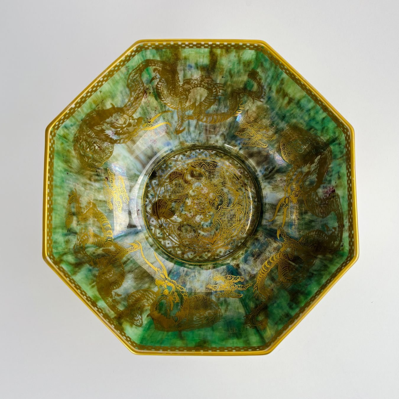 Bowl inglés octogonal en porcelana Wedgwood decorado «chinoiserie». 10 x 21 cm.
