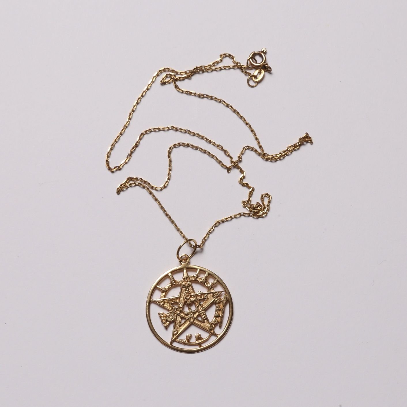 Cadena y colgante en oro 18 K amarillo. Colgante calado «Estrella de David». Largo cadena 46 cm. Peso total 7 gr.