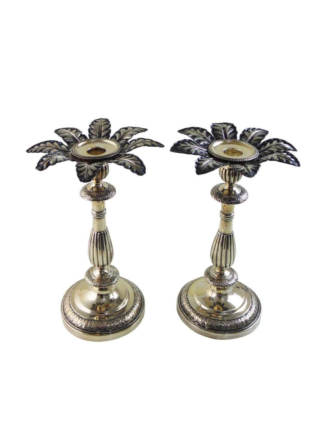 Par de candeleros en plata rusa cincelada y esculturada «hojas». Realizado por el platero Ludvig. Alto 25 cm.