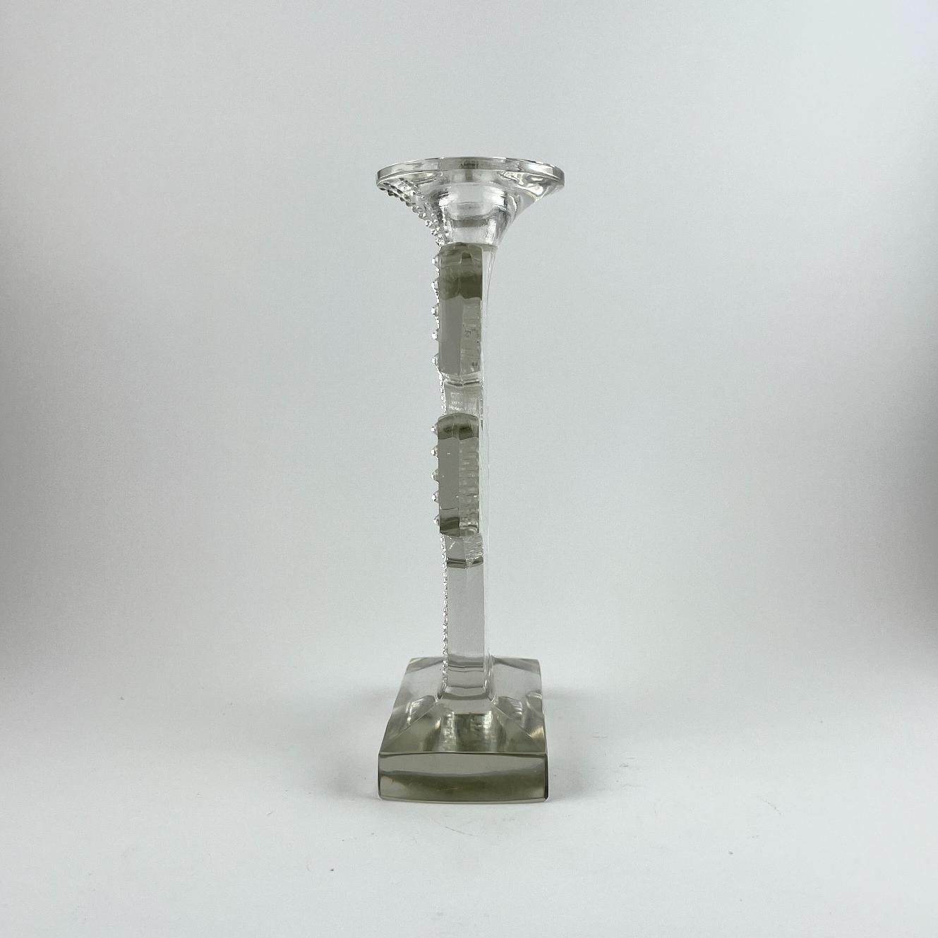 Juego de cuatro candeleros franceses en cristal Lalique modelo «Tokyo». Firmado «R. Lalique France» en la base, en letra imprenta. 21 x 12 x 5 cm.