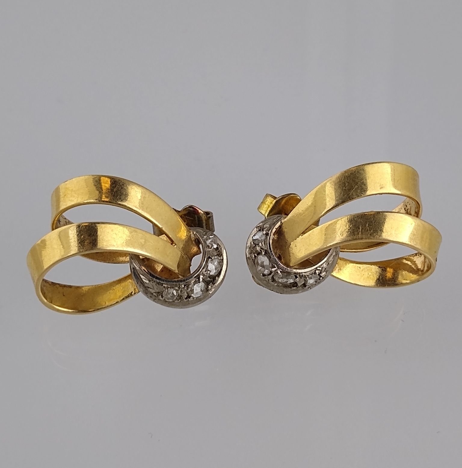 Par de caravanas en oro 18 K amarillo y blanco con cuatro diamantes cada una. Peso bruto 4.7 gr.