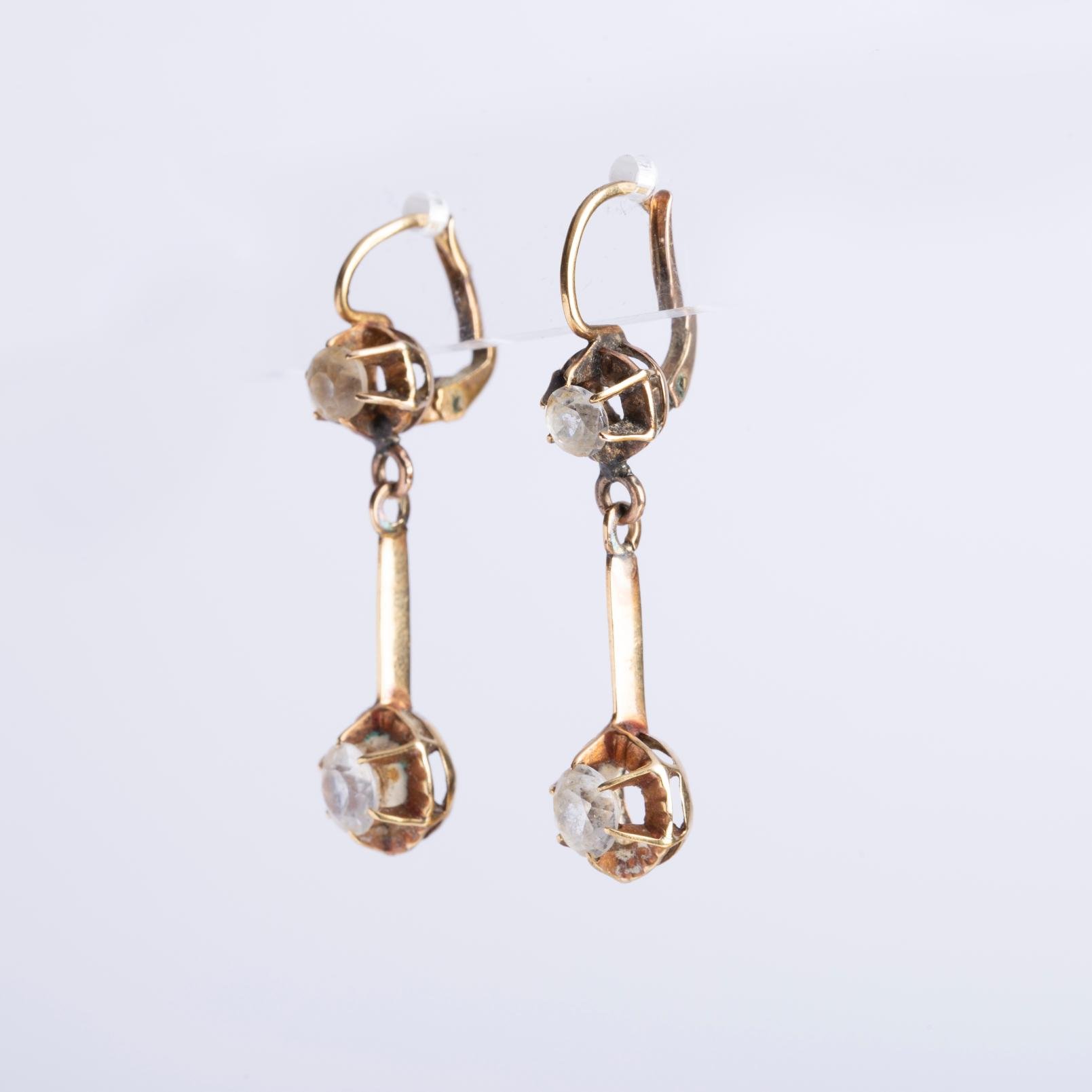Par de caravanas en oro amarillo con dos zirconias en cada una. Alto 33 mm. Peso bruto 3,5 gr.