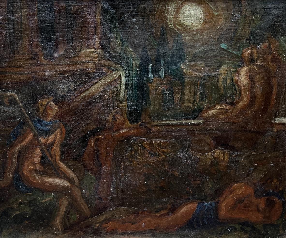 CARLOS ALBERTO CASTELLANOS (Escuela uruguaya, 1881-1945) Óleo sobre tela «El sueño de Endimión» 45 x 54 cm