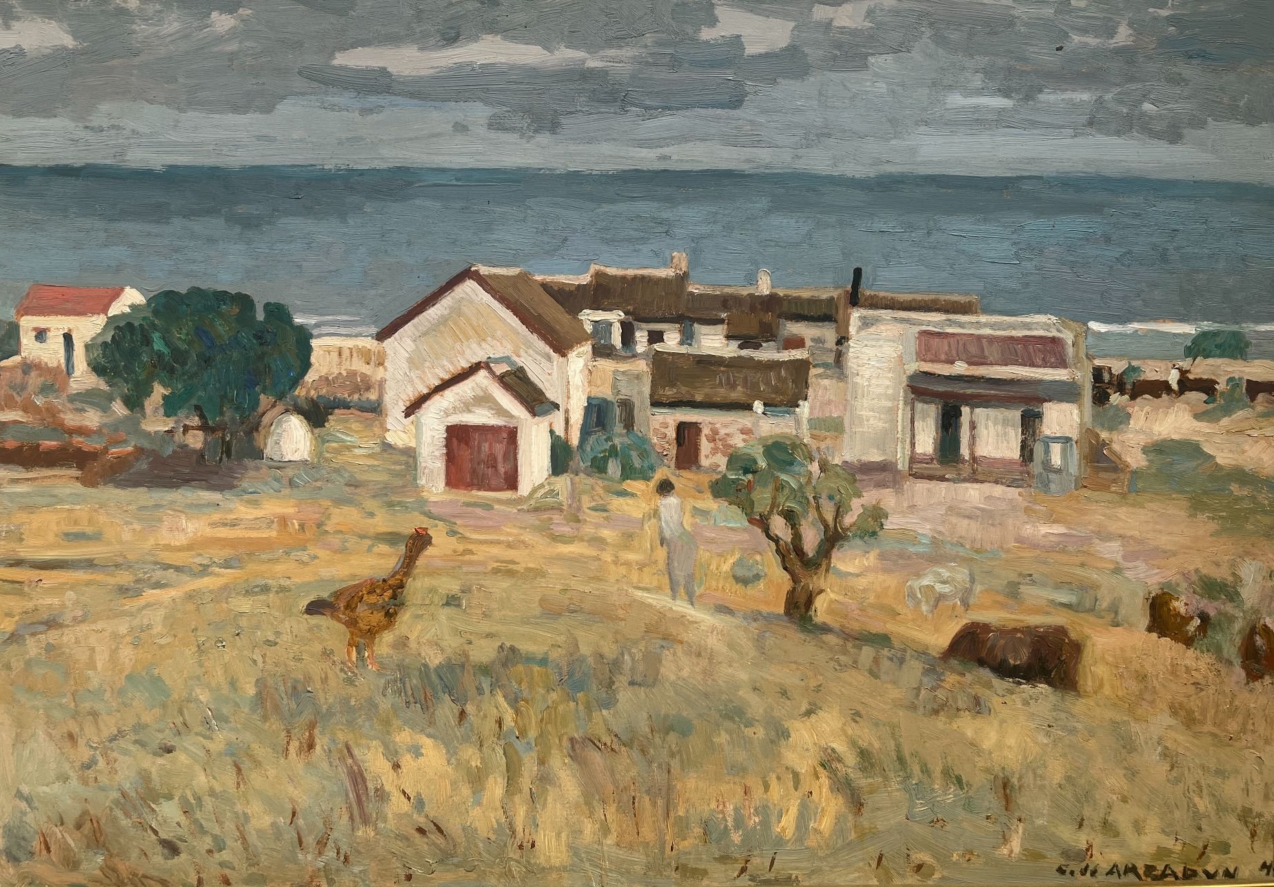 CARMELO DE ARZADUN (1888-1968) «Casas en la costa» Óleo sobre cartón Firmado abajo a la derecha 50 x 70 cm