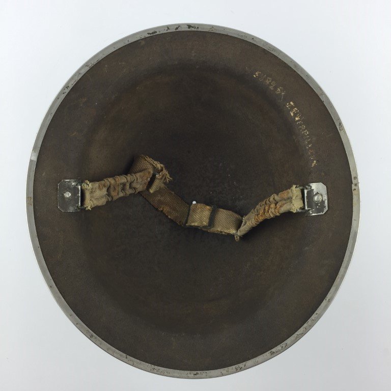 Casco británico MKII en acero pintado color gris. Interior incompleto. WWII.