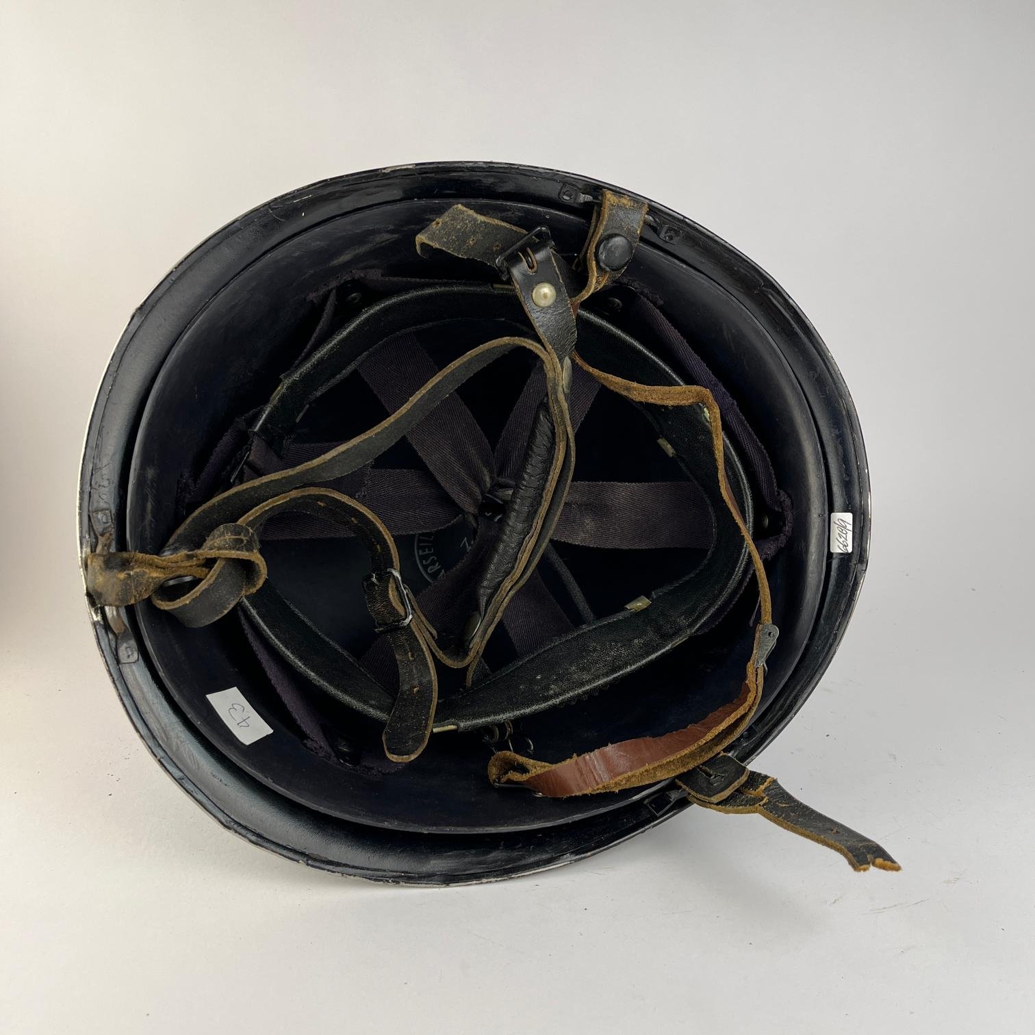 Casco francés de gendarmería, M56, en acero. Insignia frontal. Interior completo.