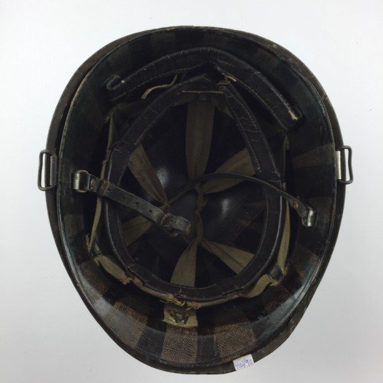 Casco militar estadounidense modelo M1 con liner en fibra e interior completo, repintado.