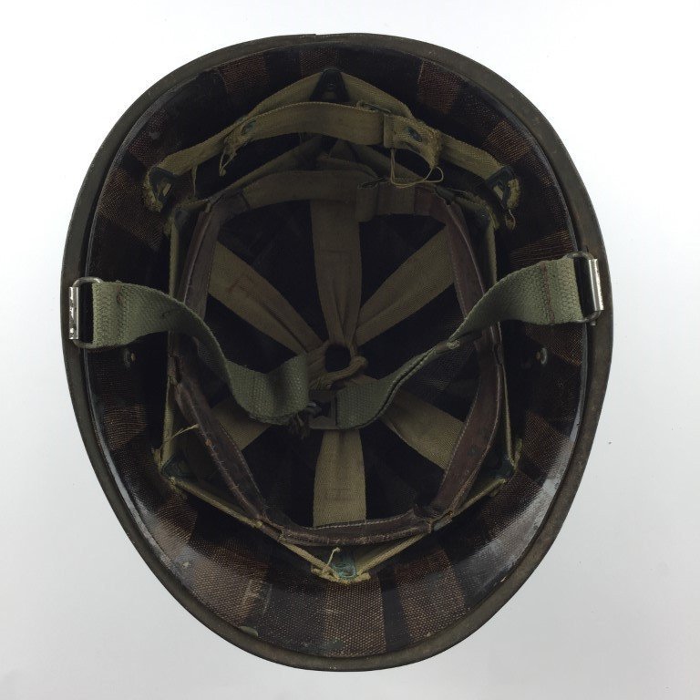 Casco militar estadounidense MI modelo 1941 en acero pintado color verde. Interior en fibra, incompleto. WWII.