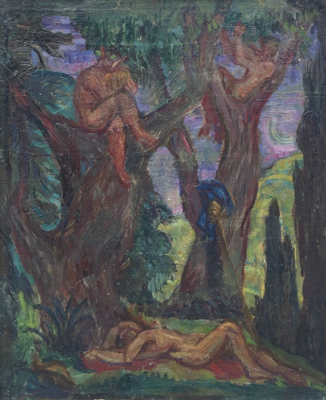 CASTELLANOS, Carlos Alberto (escuela uruguaya, 1881-1945). Óleo sobre tela. «El sueño de Endimión.» Sin firmar. 59 x 49 cm.