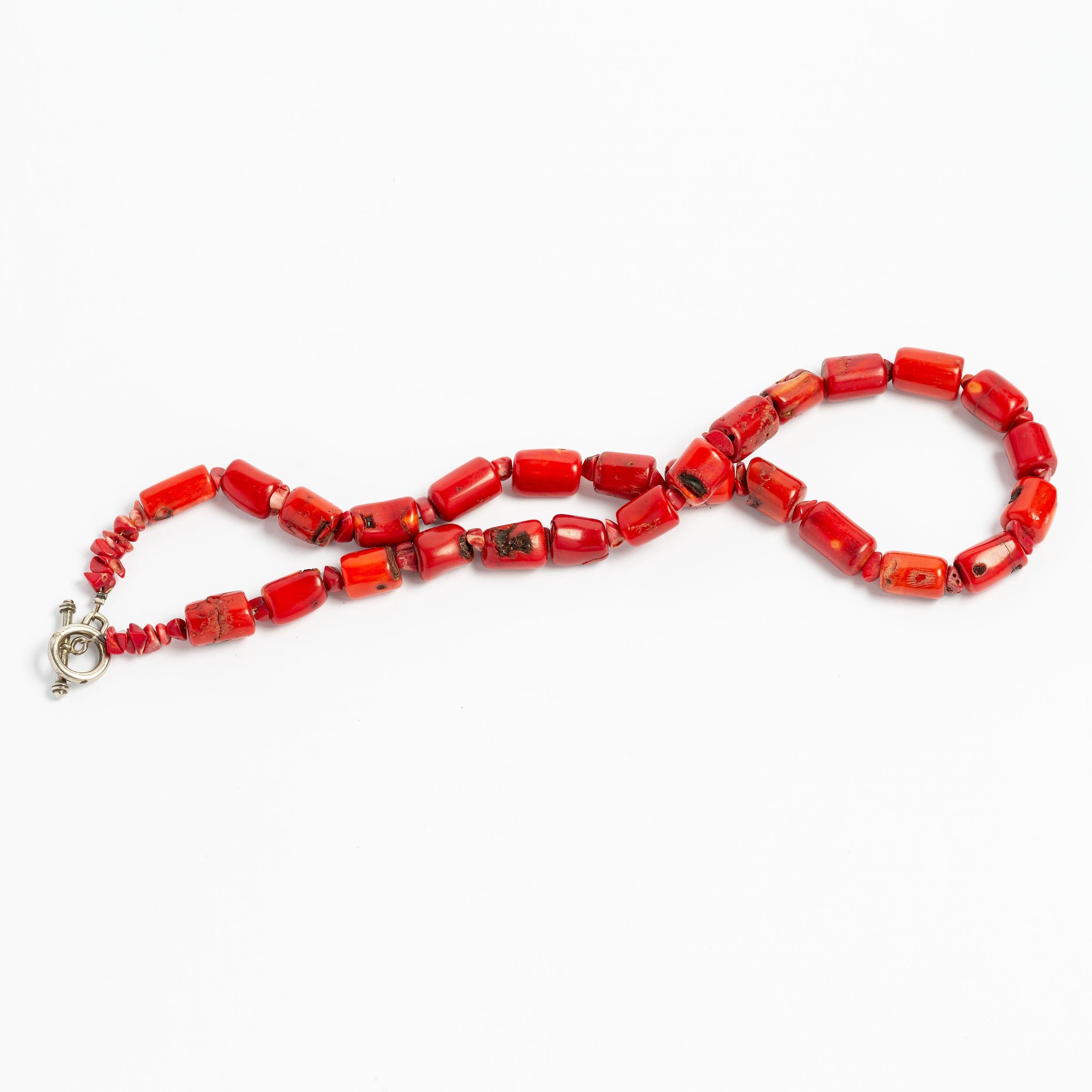 Collar en cuentas de coral mediterráneo. Largo 52 cm.