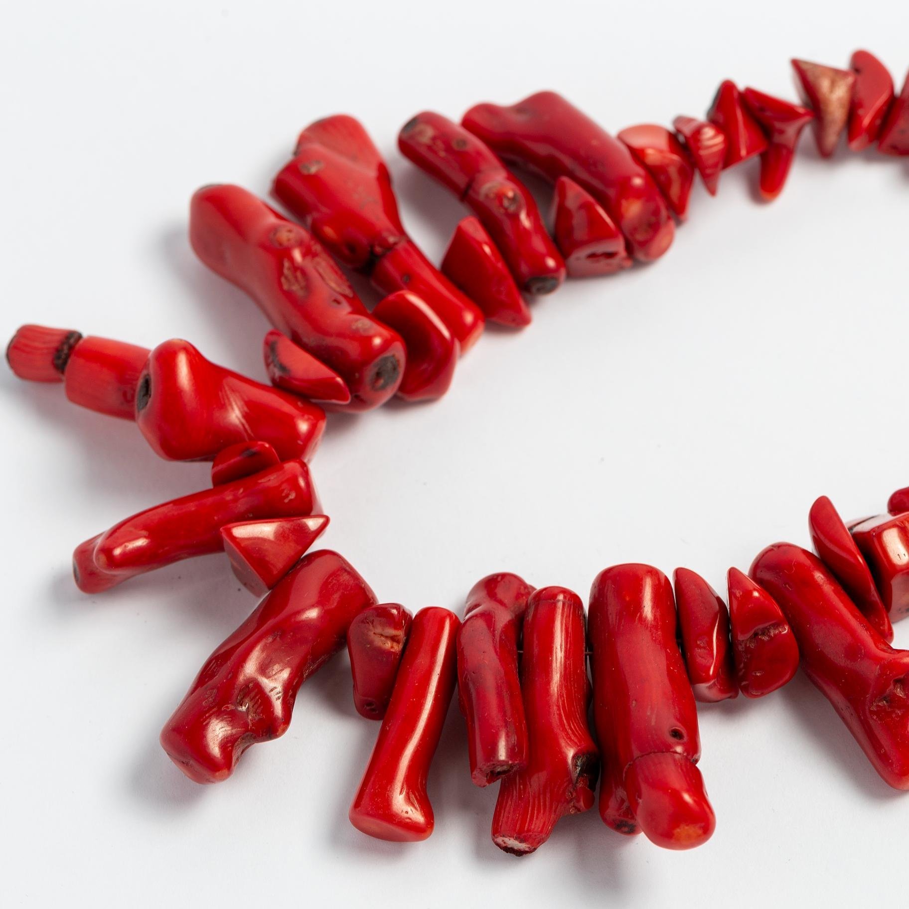 Collar en cuentas de coral mediterráneo. Largo 53 cm.