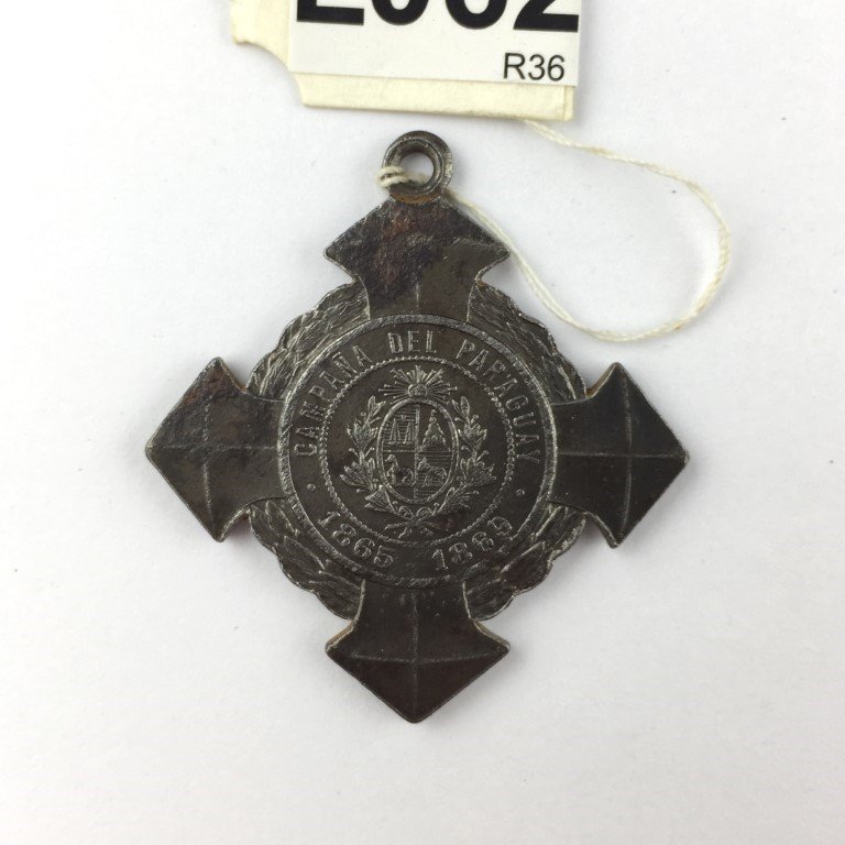 Condecoración militar época Guerra del Paraguay, en hierro pavonado. Otorgada al ejército aliado por el gobierno uruguayo. Sin sol y sin cinta.
