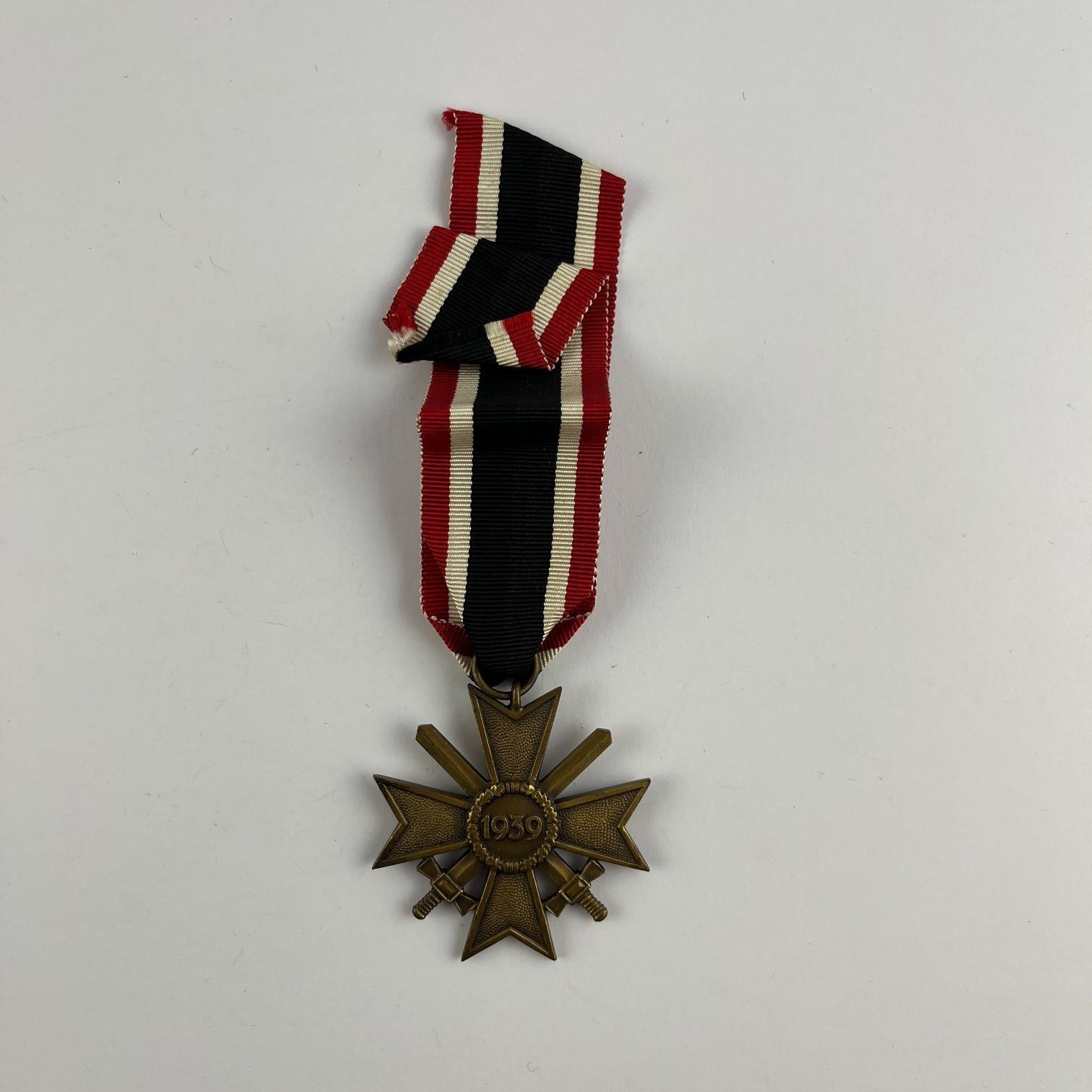 Condecoración militar alemana WWII. «Kriegsverdienstkreuz» o «Cruz al Mérito de Guerra». Primera clase, con espadas. Con cinta original.