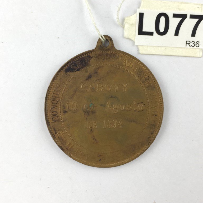 Condecoración militar brasileña. «Batalla de Carovy.» Otorgada tras la revolución federalista de Rio Grande do Sul, año 1893. Con efigie de Gumersindo Saravia.